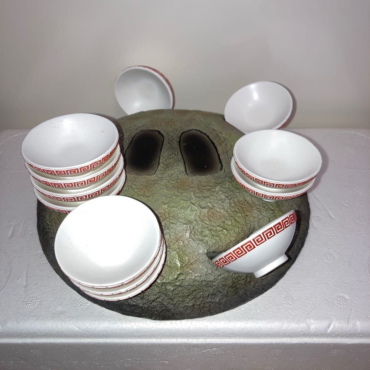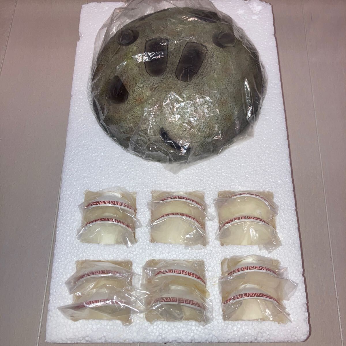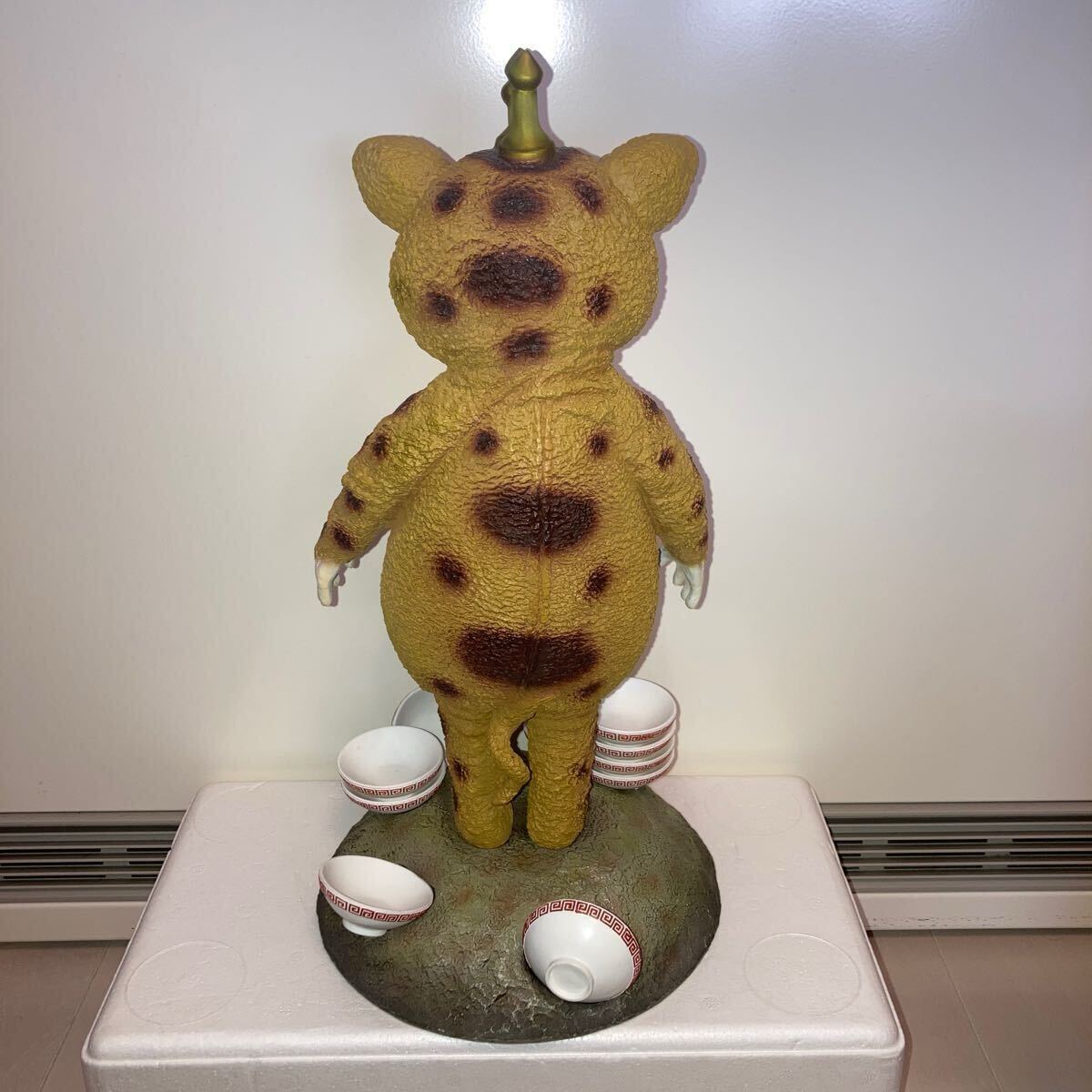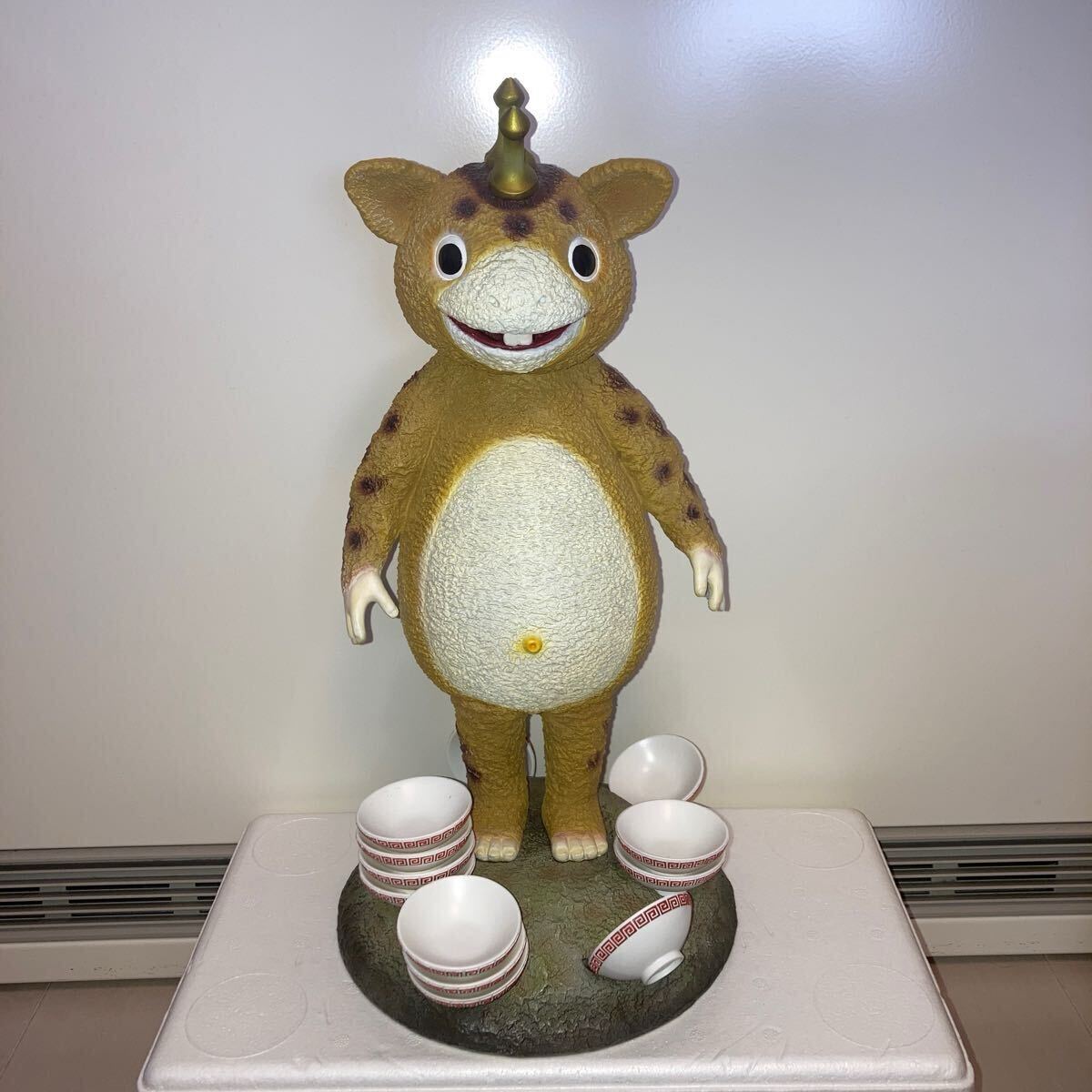 全長約34センチの陶器の商品です。購入時にブー冠(一番手前のツノ)が折れていて接着しています(画像3枚目)。