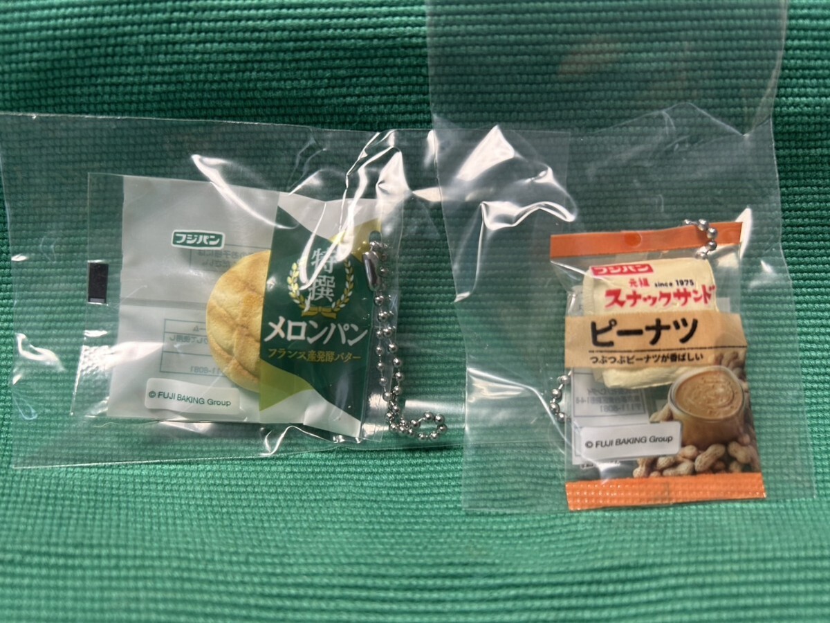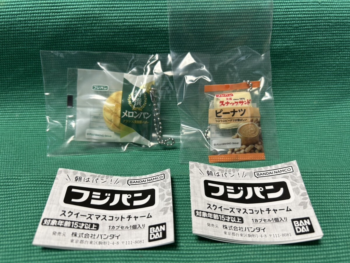 新品!フジパン スクイーズマスコットチャーム 2個セット「特撰メロンパン」「スナックサンドピーナツ」です。