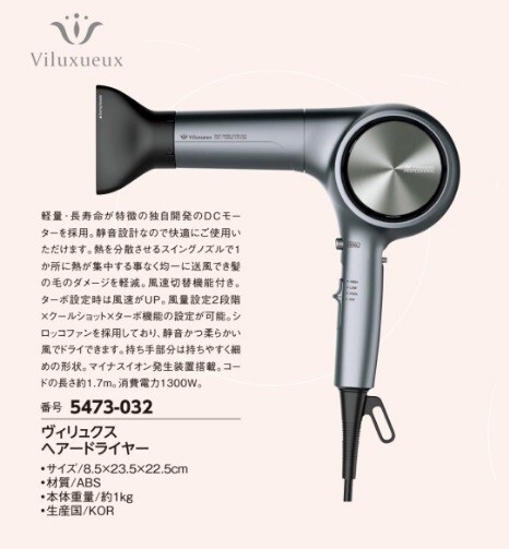 【商品番号】 5473-032 【商 品 名】 ヴィリュクス ヘアドライヤー |