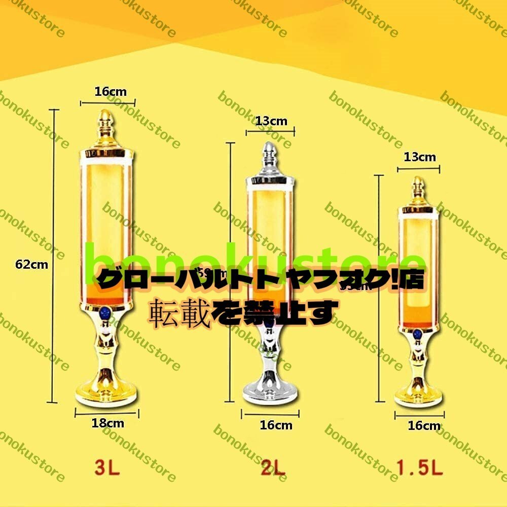 目を引くデザインは、ブライダルシャワー、ベビーシャワー、卒業式、披露宴、その他ご自宅やオフィスでのエンターテイメントに最適です。 素材: ABS 色: ゴールド 製品寸法: 1.5L: 13x55cm、2L: 13x59cm、3L: 16x62cm 容量: 1.5L、2L、3L パッケージ内容: 飲料ディスペンサー x 1、製氷チューブ x 1。