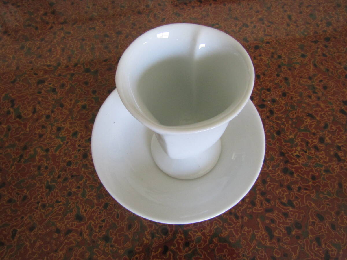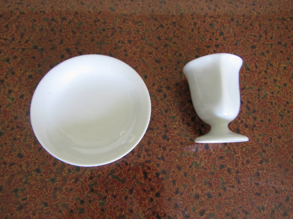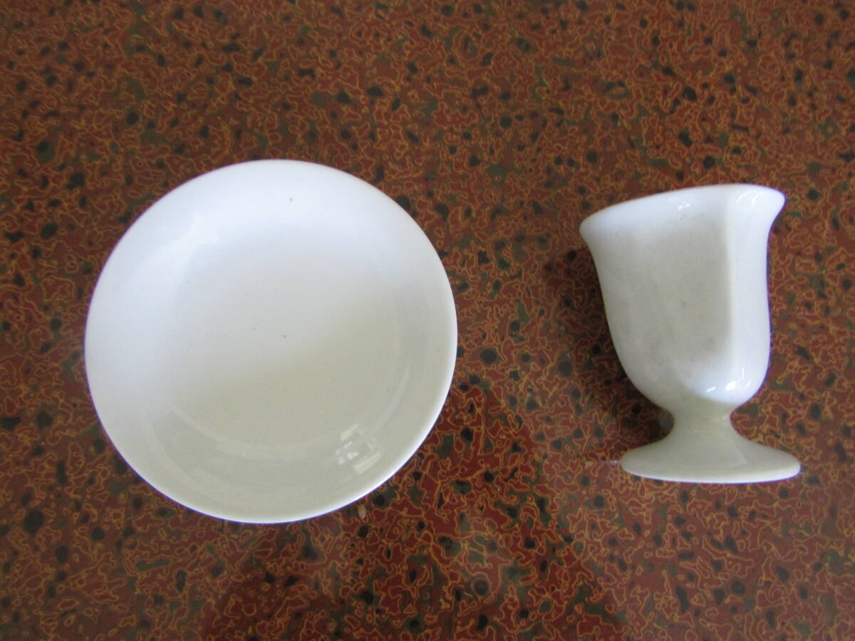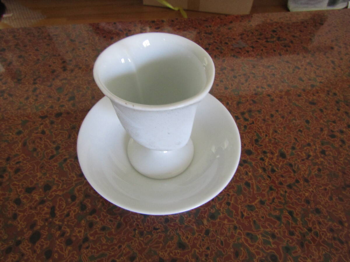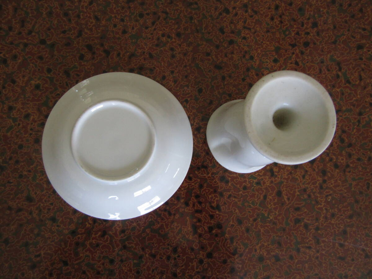 ヨーグルトを入れていました。高さ9.5cm口部直径7cm台部直径6cmソーサー直径14cm高さ2.5cm