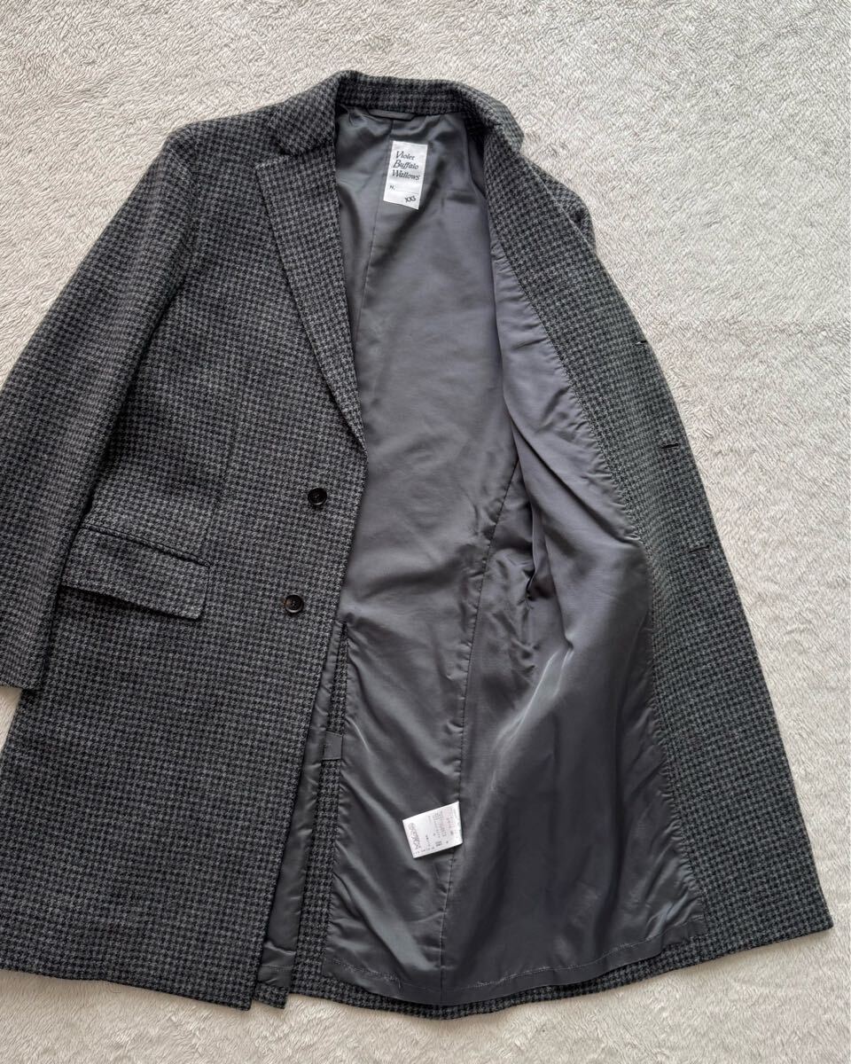 ・起毛した風合いの良いツイード系のウール生地を使用し千鳥格子柄にクラシック感ある定番デザインが雰囲気抜群でとてもお洒落なコートになります♪