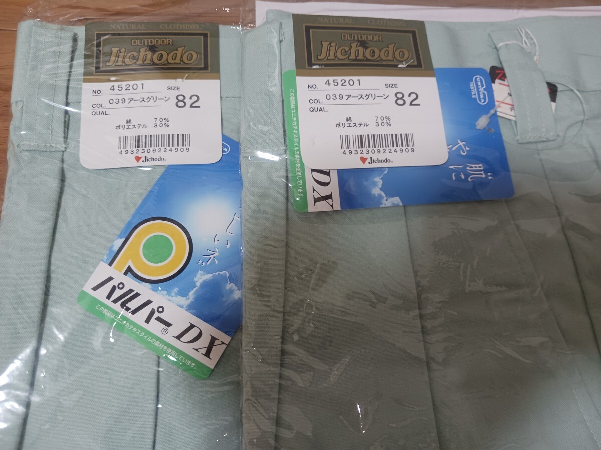 3884 自重堂|JICHODO|ツータックパンツ|45201|アースグリーン|W82㎝×2本|春夏|新品未使用|吸汗速乾|パルパーDX|綿ポリ|ズボン|スラックス