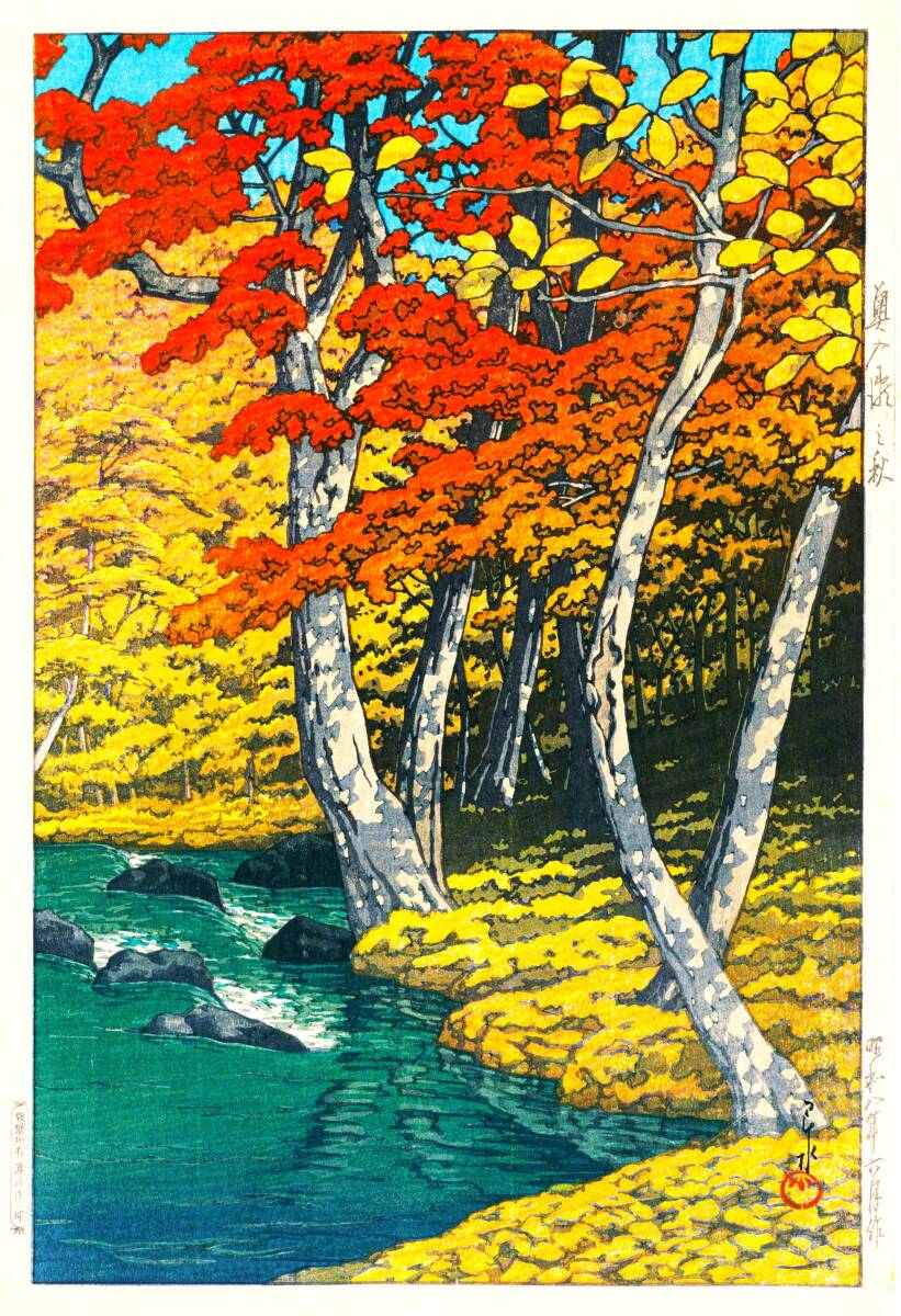 | ■商品説明■ | ■ 川瀬巴水 1作品(No456) アラベール紙仕上 出品作品 「奥入瀬の秋」 ■サイズ 長辺 42.0cm×短辺29.7cm(マージン・余白含む) ■使用用紙 アラベール紙 厚手紙厚0.21mm 坪量:151.2g/m2 紙本来の手触りが魅力です。柔らかい風合いを失わず、ナチュラルで気品のある印刷表現を可能にします。つるつるしておらず、紙本来の質感を感じられるような優しくて柔らかいものになっています。紙ならではの素朴な風合が特徴の高級紙です。和紙同様素朴な感じの高級感のあるものとなります。手触りや紙の素朴さをより重視したい場合は目的に合うでしょう。 ■印刷方式(無版式採用) 印刷方式は「有版式」と「無版式」の2種類に分類。印刷の際に「版」があるかないかに違いがあります。「無版式」は版を使いません。インクジェット等の方法で直接印刷。 ■ 作 者 川瀬 巴水(かわせ はすい、1883年(明治16年)5月18日 - 1957年(昭和32年)11月7日)は、日本の大正・昭和期の浮世絵師、版画家。 ■印刷 使用用紙 無版式・インクジェット アラベール紙 複製 ■観 賞 ご家庭で額装観賞する場合、作品より大き目の額縁(作品サイズより縦横それぞれ7センチ程度以上)を選んでマット額装すると作品が映えます。 ■価 格 価格もお手頃な設定にしています。真筆ではございませんが和洋室問わずインテリアの人気作品としてお楽しみ頂けます。 ■画 像 掲載の画像はお手元のパソコンモニター等の設定により、お届け品とは多少の印象差を生じる場合が御座います。 ■発送等 定形外・規格外郵便(出品者負担) 入金確認後1〜2日以内(月~金曜日)日中の発送手配となります) ■受取等 お互いの信頼のため到着後24時間以内にお願いいたします。 |