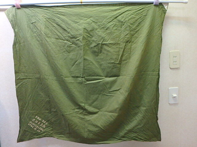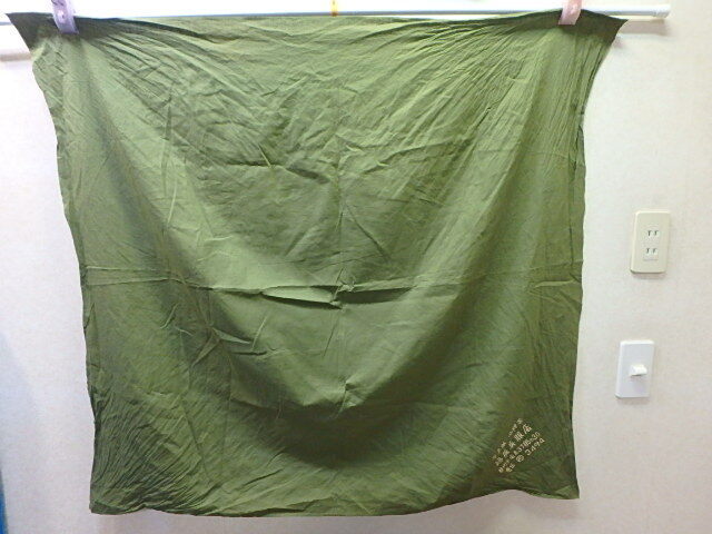 n504y 古い風呂敷 約107×97㎝程 呉服店名入り 呉服店 グリーン系 レトロ 破れあり 中古 (25-0418-9)