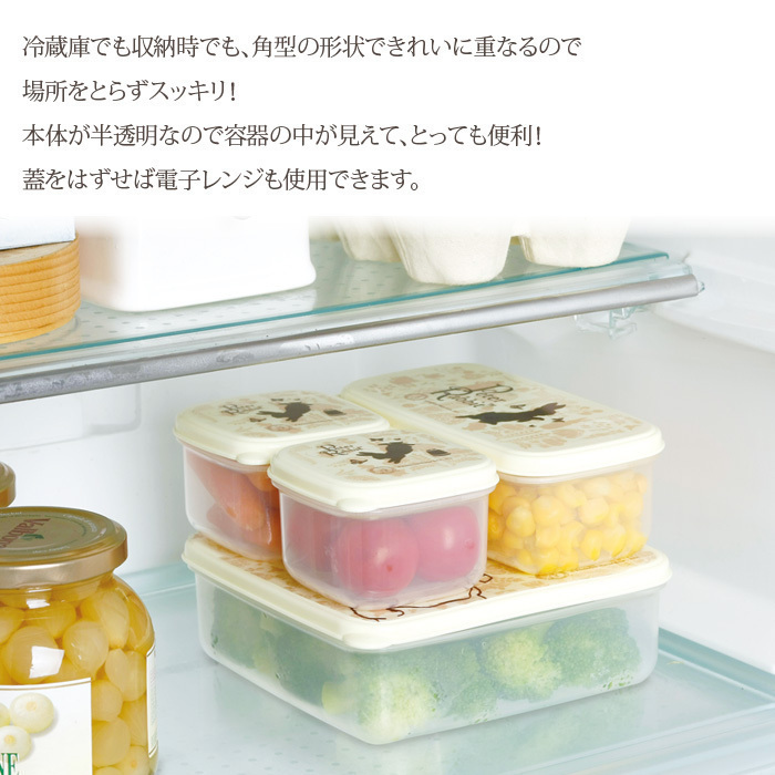 | 商品説明 | 冷蔵庫でも収納時でも、きれいに重なるので場所をとらずスッキリ。 |