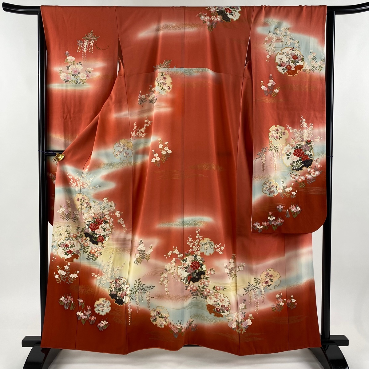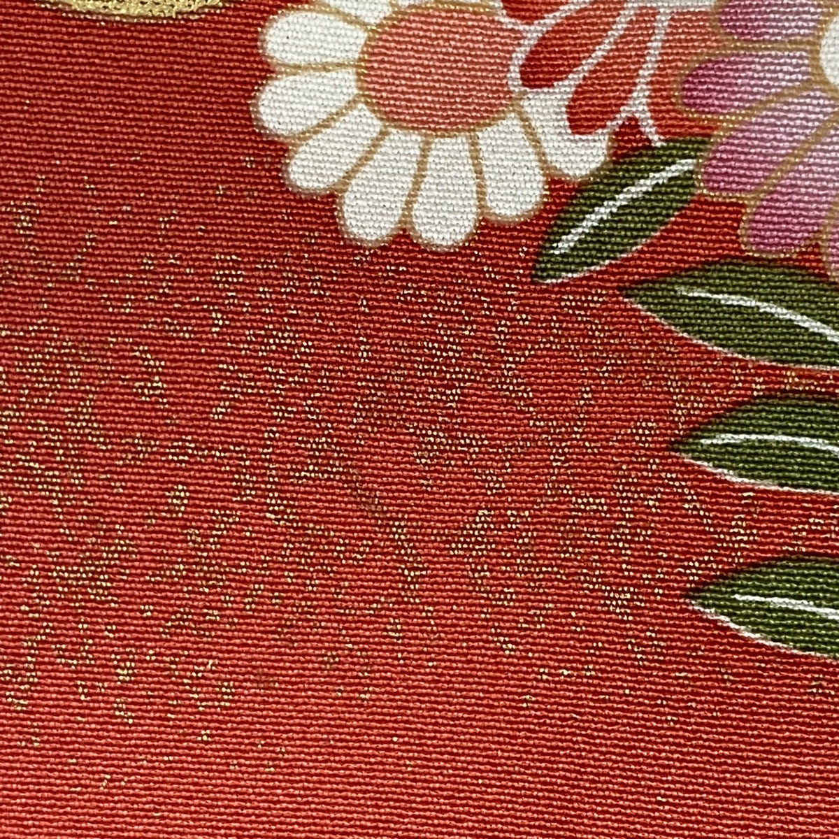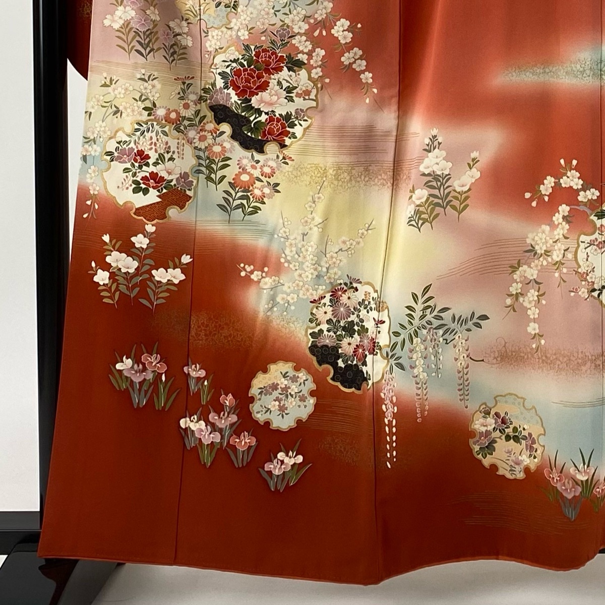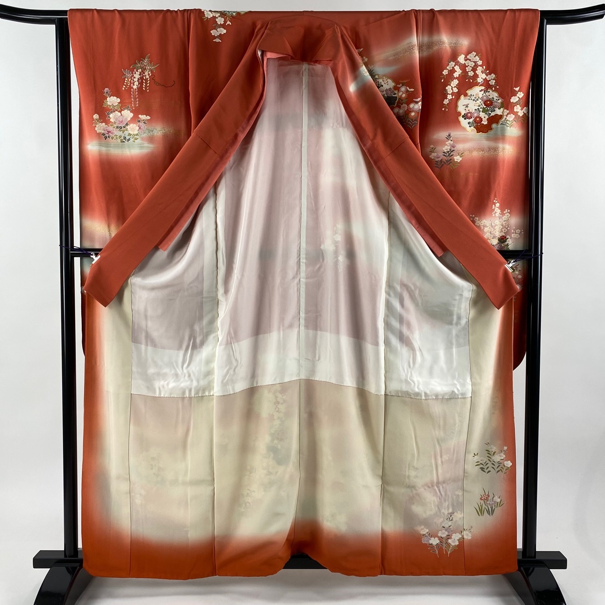 振袖 名品 雪輪 草花 金彩 ぼかし 茜色 袷 身丈160 裄丈64 M 正絹 【中古】 |