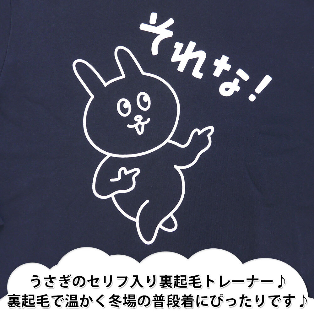 正規店仕入れの新品未使用品です ポリエステル素材で、吸汗速乾に優れます うさぎのセリフ入り裏起毛トレーナー 裏起毛で温かく冬場の普段着にぴったりです |