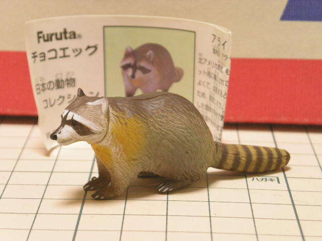 チョコエッグ 日本の動物4 #100 アライグマ です 撮影・部品確認のために組み立てました 欠品はありませんがカプセルはありません。 解説書付属しますが、ラインナップリストは欠品の場合があります (ご希望があった場合や複数落札時は最低1点は付属するように配慮します) また、解説書・フィギュアの版については特に区別しておりません 商品の細かな状態(汚れ・キズ・塗装の状態)は異なります。 詳細な状態(細かな汚れやキズの有無)が気になる場合は 必ず入札前に質問をお願いします。 入札後は商品状態に関するいかなる要望もお応えできません。 管理番号:012/43-55 商品サイズ 定形サイズ 9g 【作業指示:PS箱現物合わせ済み】 ※商品サイズは、概算・最大値となり厳密なサイズと異なるほか 梱包により重量・サイズが増えますのでご留意ください (これは落札数量「1」の場合の案内です。 複数個落札や同梱がある場合、対応できない発送方法もあります。) ※商品写真にマス目のマットが写り込んでいる場合は 1マス1cmとなりますので、サイズ感の参考になさってください ※商品写真に記号番号等が写り込んでいる場合がありますが、 これは写真の管理のためのものですので無視してください | |||||||||||||||||||||||||||||||||||