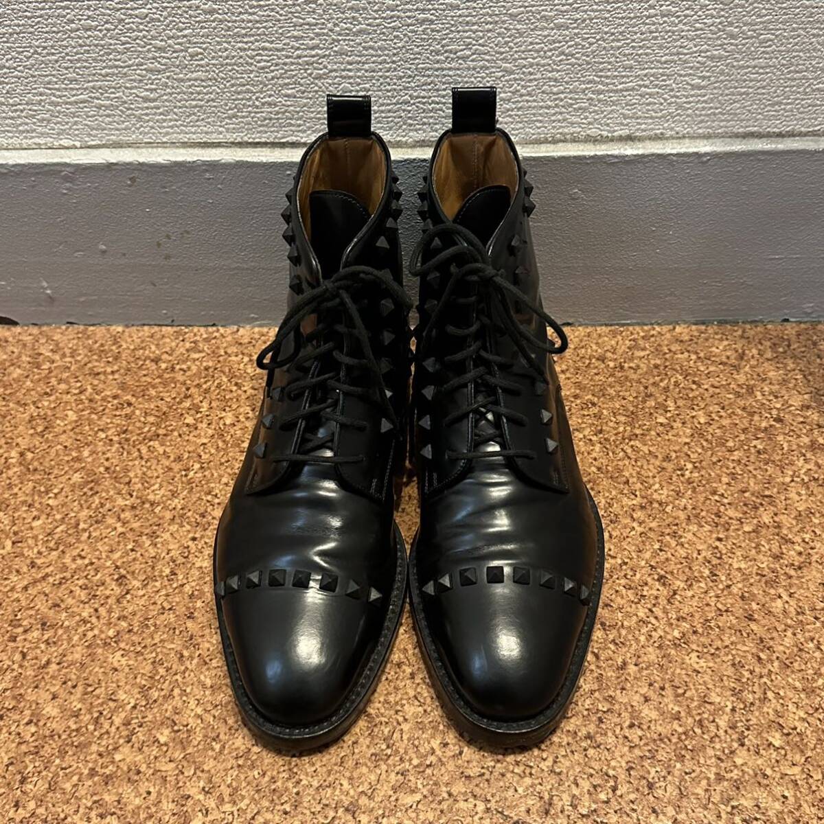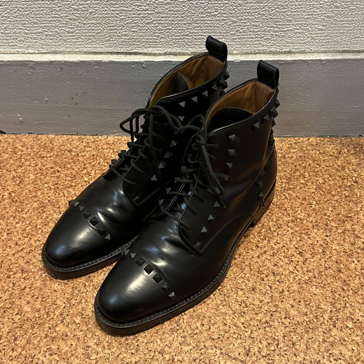 全体的に小傷・スレ汚れ、両足に履きジワ、少々のソールの減り(特に踵部分)、所々にスタッズの破損がございます。