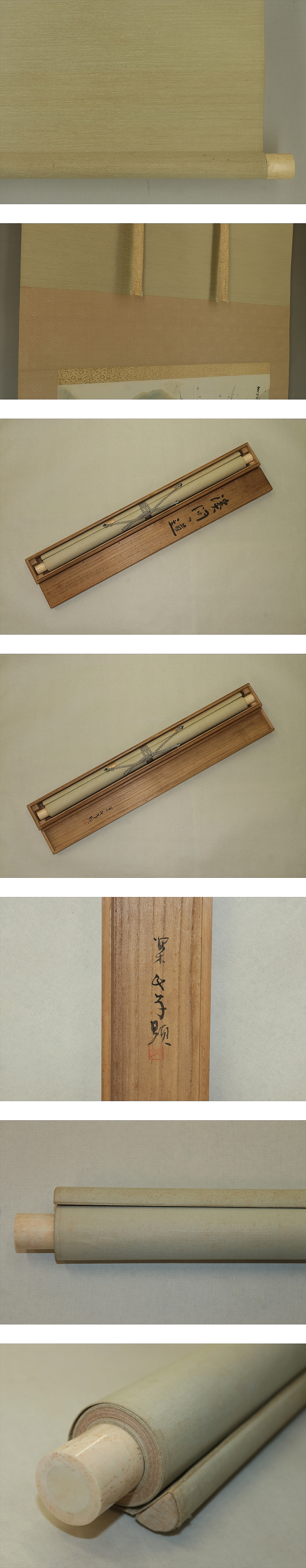 田中案山子 たなか-あんざんし(1906-1970) 昭和時代の日本画家。 明治39年5月5日生まれ。田中以知庵に学ぶ。 昭和4年院展に初入選,7年院友となる。12年小林巣居人らと新興美術院を結成。 戦後,新興美術院を再興。30年からは個展を中心に活躍した。 昭和45年5月14日死去。64歳。東京出身。本名は格男。 本紙は、染み、薄汚れ、軽い折れ、皺があります。 表装は、染み、汚れ、軽い折れ、皺、破れがあります。 【サイズ】 作品 横約51.5cm×縦約44cm 表装 横約65cm×縦約141cm |