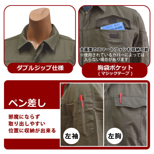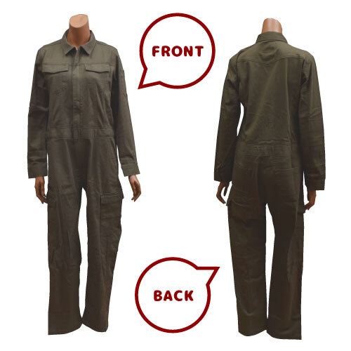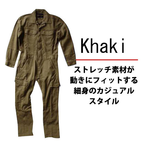 DOORNNING GN 【DO-209001】レディース 長袖・コットンストレッチツナギ ■11号サイズ■ カーキ色 ▼ストレッチ▼
