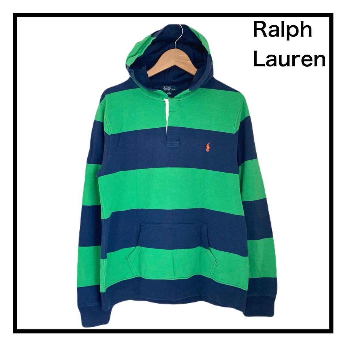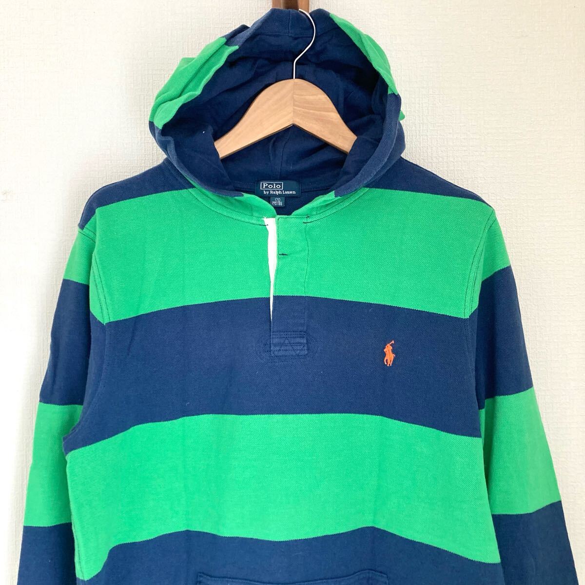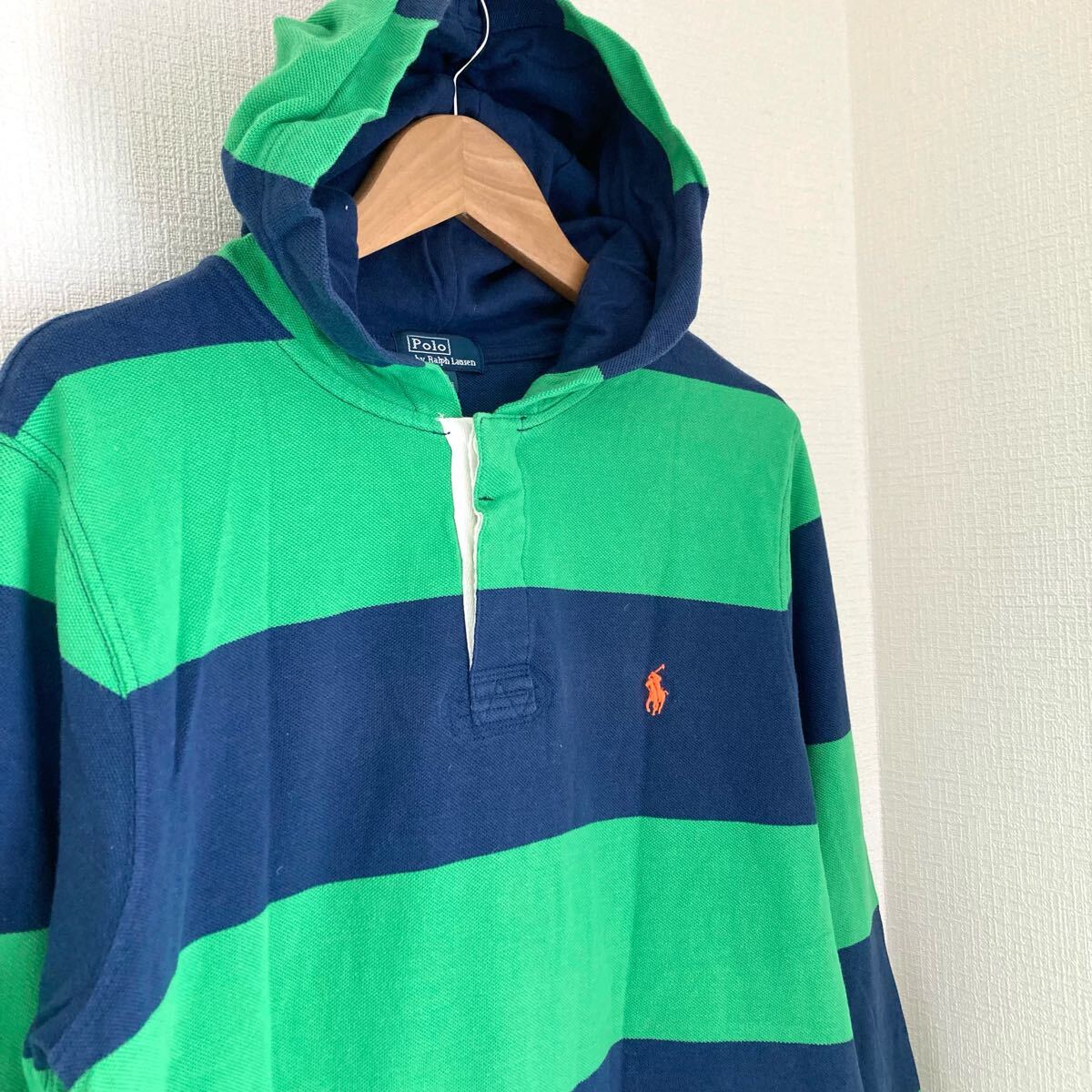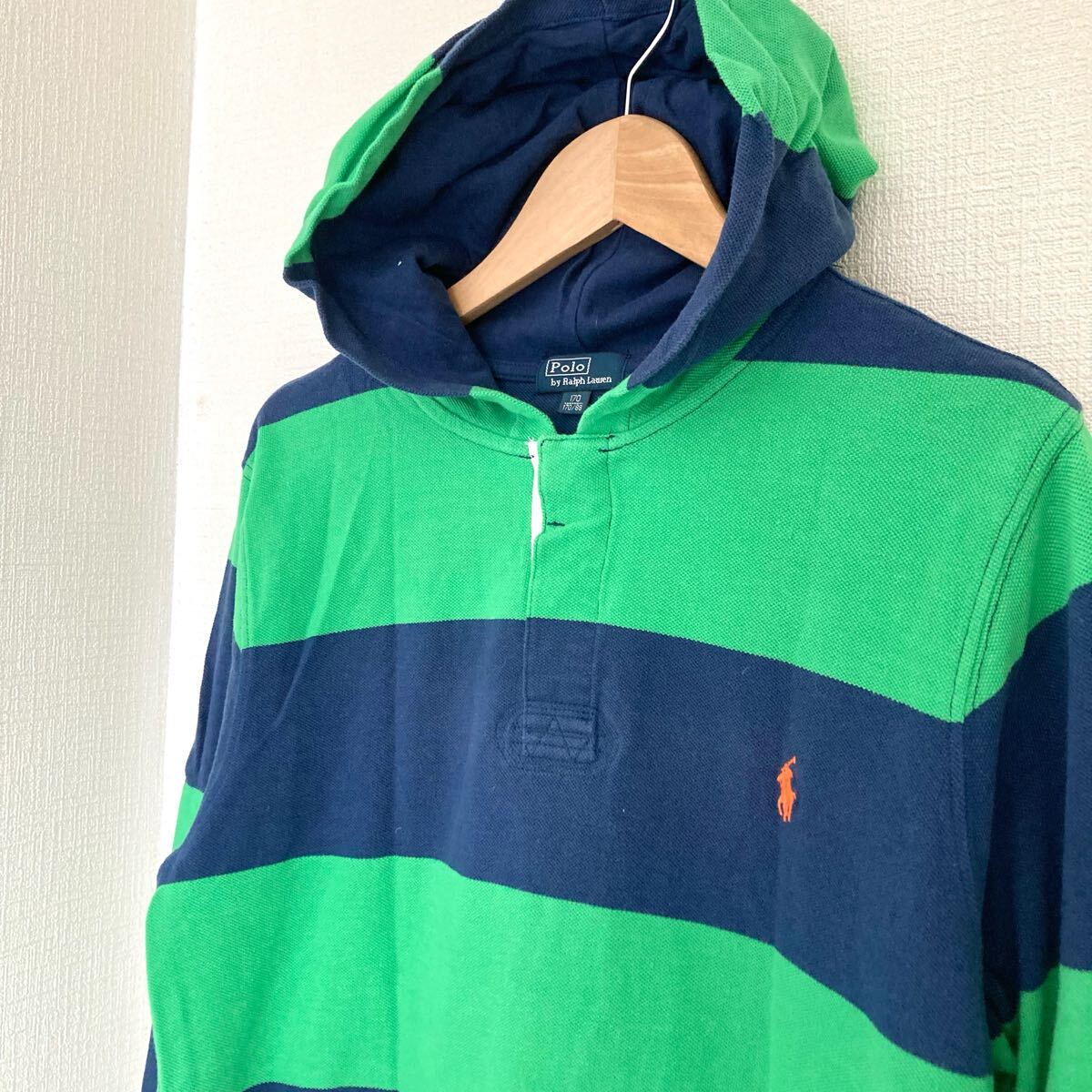 ラルフローレン ラガーシャツ フード付き パーカー 長袖 ボーダー 刺繍 ロゴ ポロシャツ