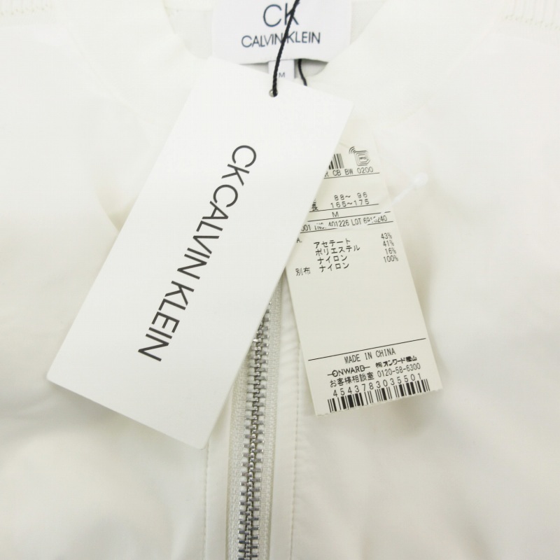 未使用品 シーケーカルバンクライン ck Calvin Klein ブルゾン ジャケット ジップアップ 異素材 切替 ニット 薄手 M 白 ホワイト