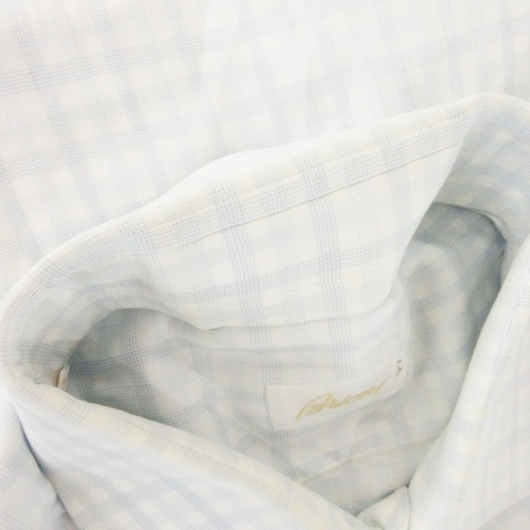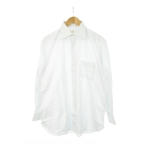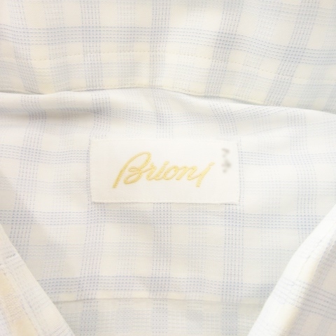 ブリオーニ BRIONI ワイシャツ ワイドカラー 長袖 チェック コットン 42 L 水色 ブルー /AH16 ■GY17 メンズ