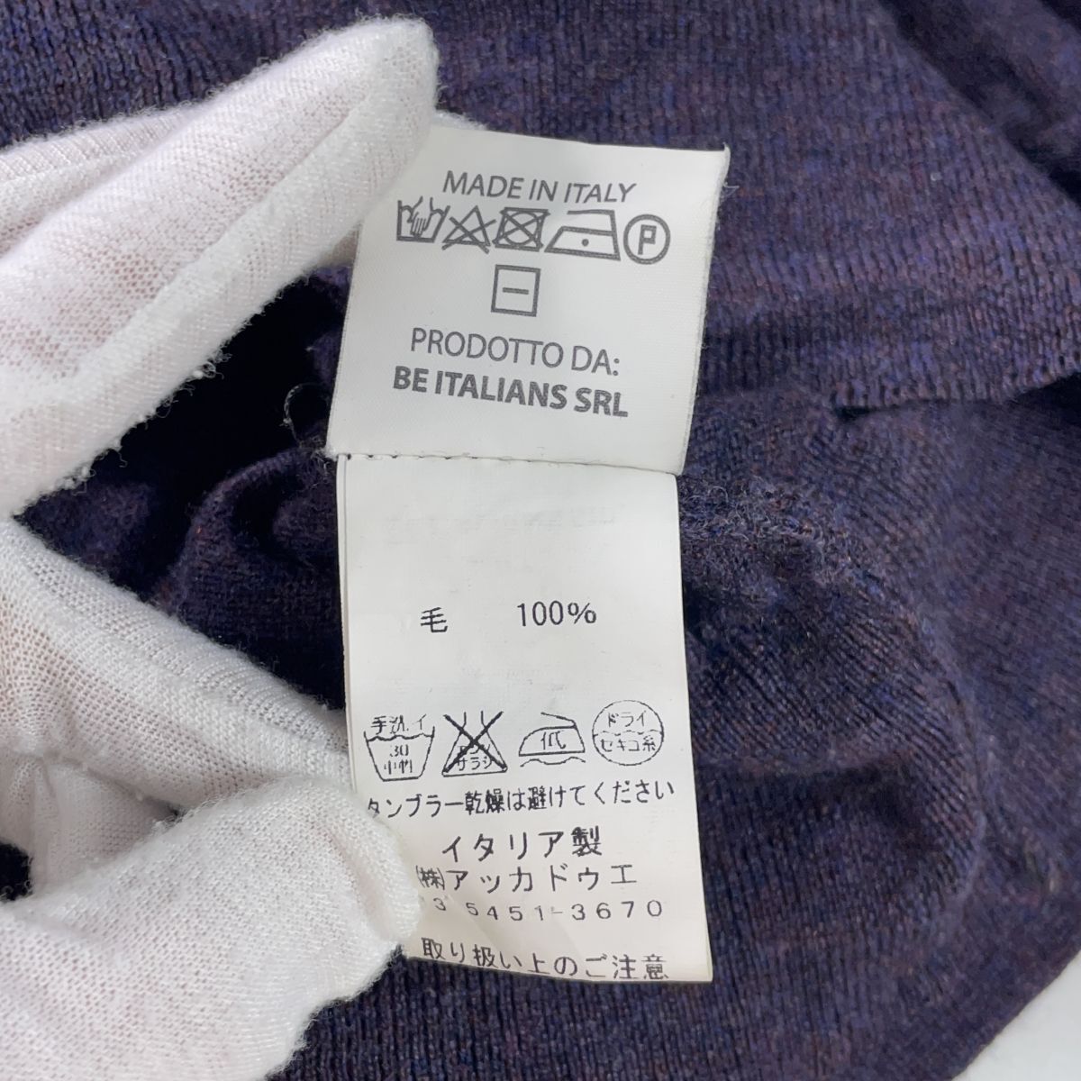◆良品◆ PRANDI プランディ ウール 100% 長袖 ニット セーター 紫 パープル メンズ M ◆イタリア製 送料無料◆ 4015D◇