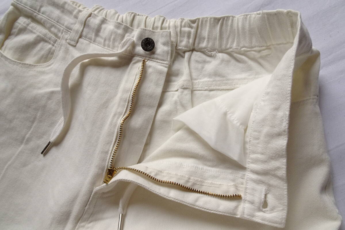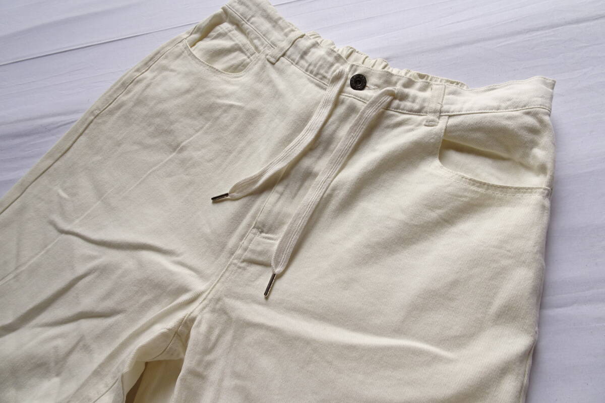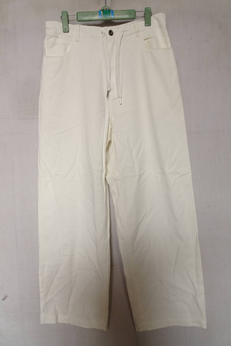 RE730/アールイー730/綿パンツ/ワイドストレート/前ボタン・ファスナー/ウエストドローコード/オフホワイト/白/Lサイズ(4/25R7)