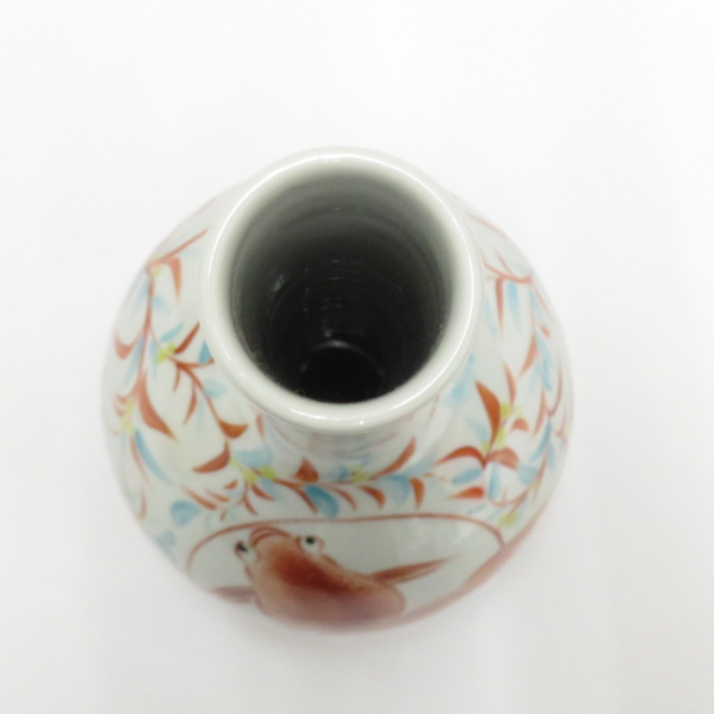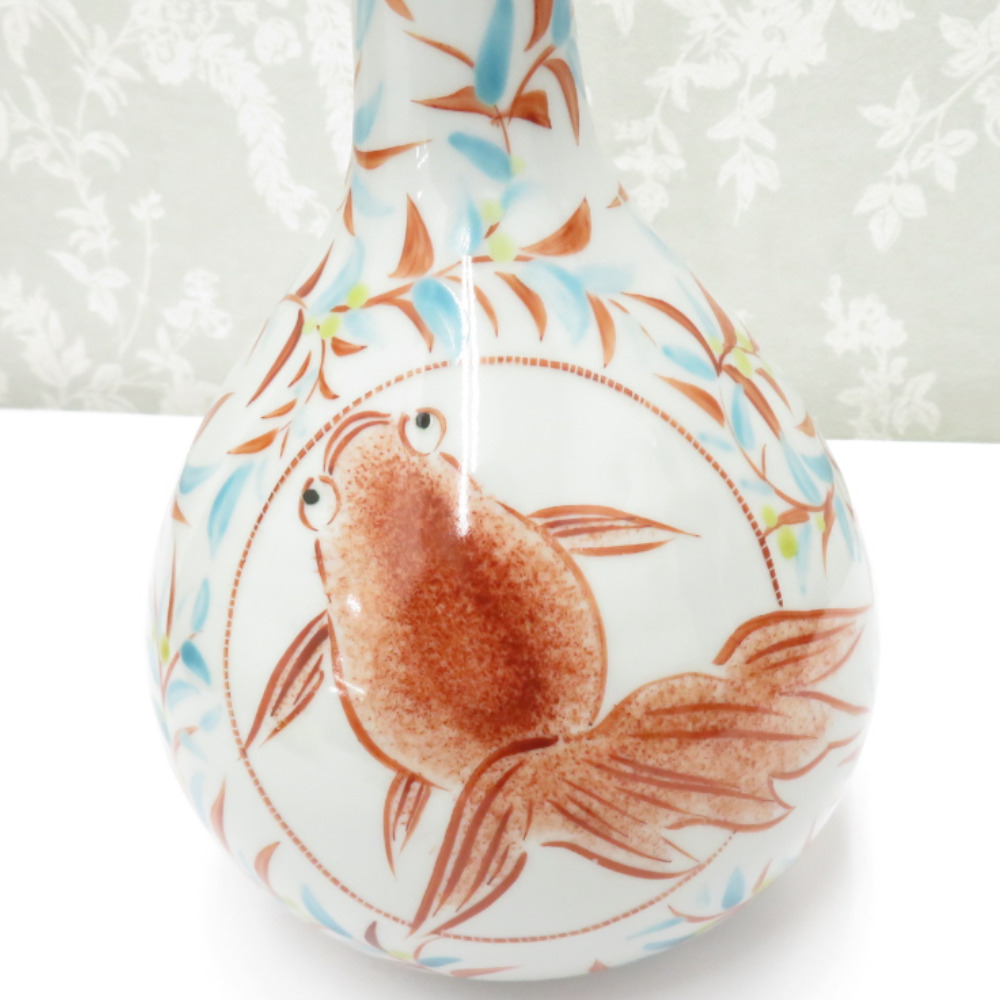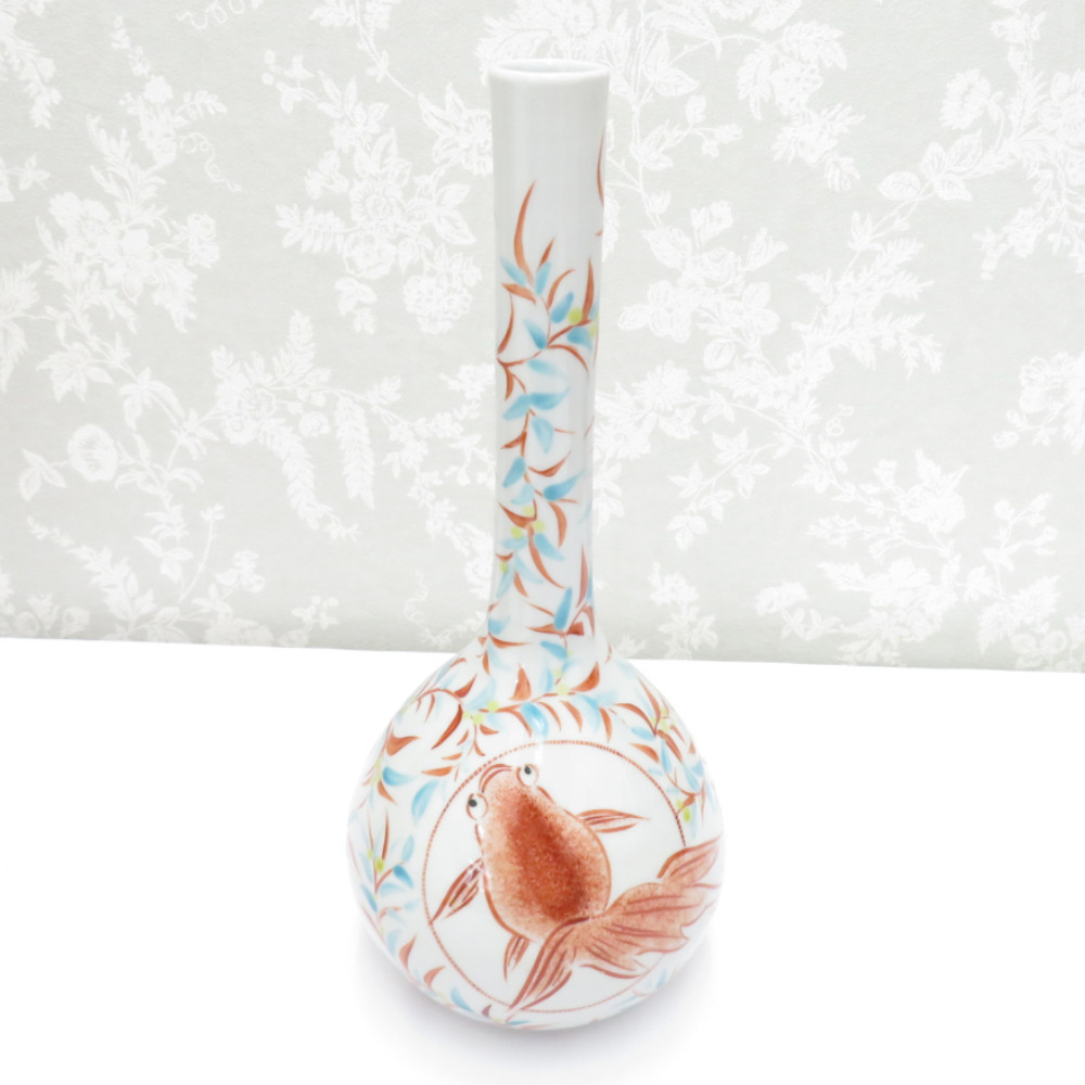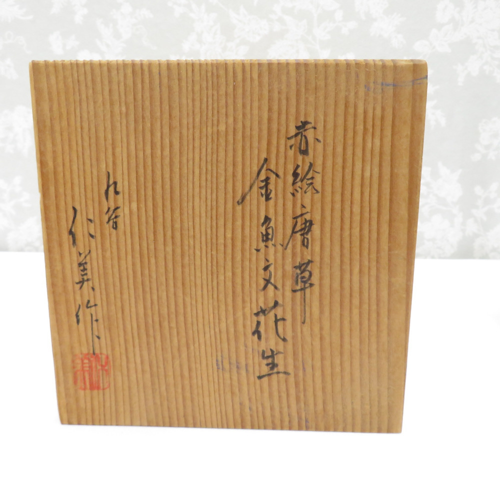 | 九谷焼 骨董・民芸品 インテリア 朝井仁美 九谷仁美 赤絵唐草 金魚文花生 花瓶 花入 花器 共箱有 |