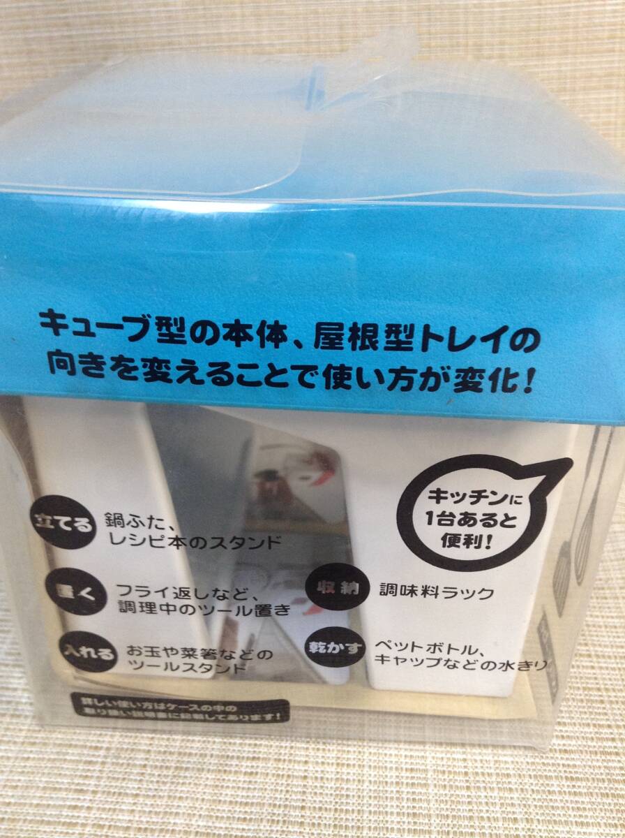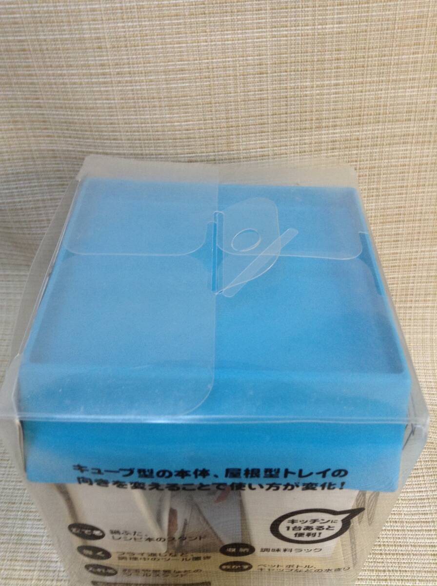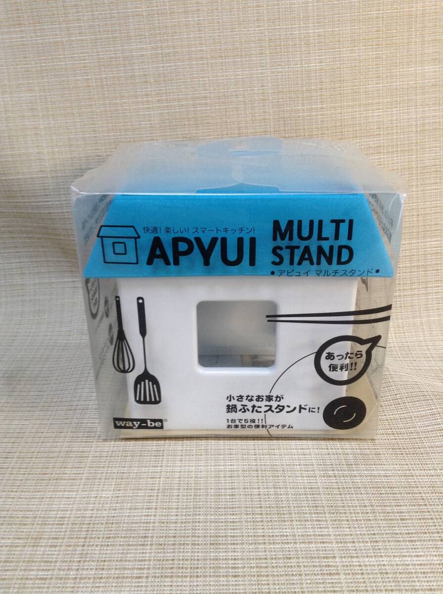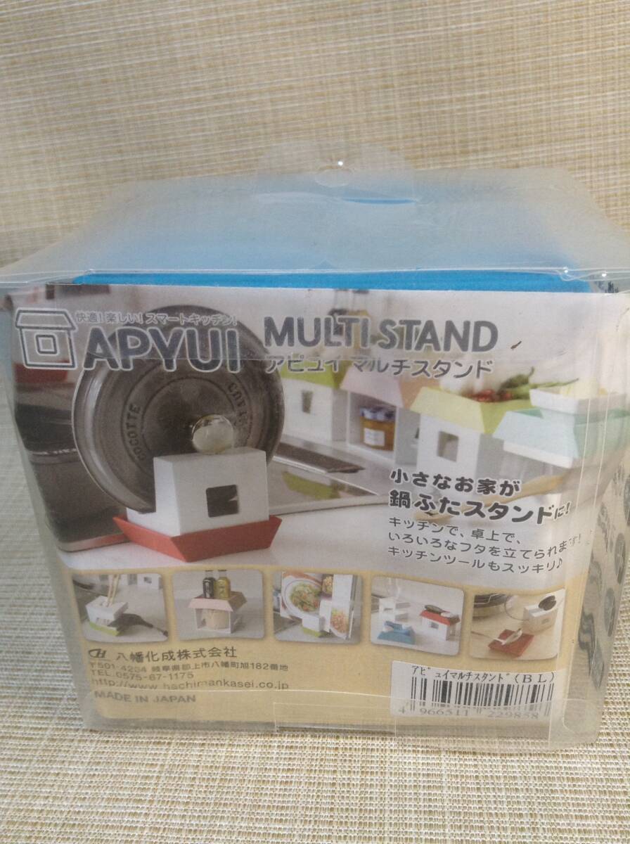 マルチスタンド アピュイ ブルー(青) 小さなお家が鍋ふたスタンドに! キッチンツール 卓上 日本製 キューブ型本体 屋根型トレイ 収納 便利