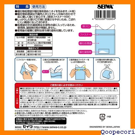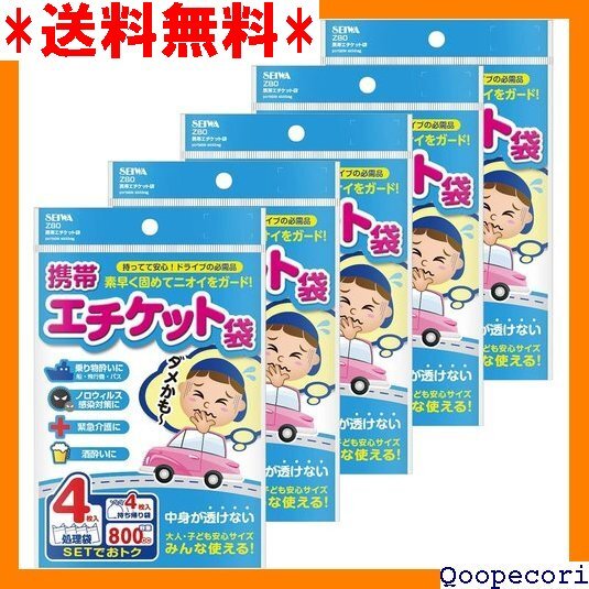 セイワ SEIWA 車内常備用品 携帯エチケット袋 4枚入×5個セット IMP156 持ち帰り袋付き800cc 旅行用 緊急 非常用 防災 災害 船酔い 高速 車酔い 嘔吐 ゲロ 長距離ドライブ エチケット袋 携帯トイレ としても使用可能 39