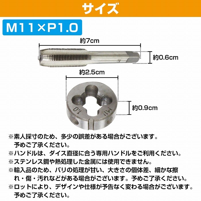 【M11×P1.0】タップダイス セット 目立て ネジ 山 修正 めねじ 再生 ねじ 穴 修復 補強 耐久性向上 雌ネジ 補修 工具 キット