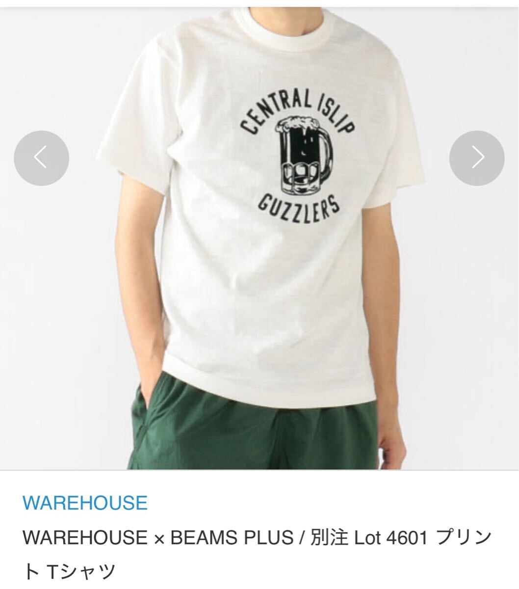 【新品未使用タグ付きビームス購入】WAREHOUSE × BEAMS PLUS / 別注 Lot 4601 プリント Tシャツ ウエアハウス(フロッキープリント) Lサイズ