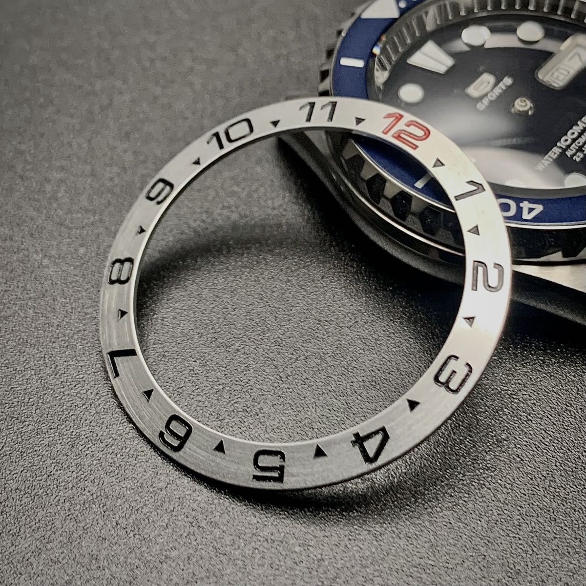 SEIKO 7S26-0020 SKX007 SBSA SRPD SRPE セイコー5スポーツ等用の社外品、デュアルタイム 12時間表記タイプのステンレス インナーベゼルになります。