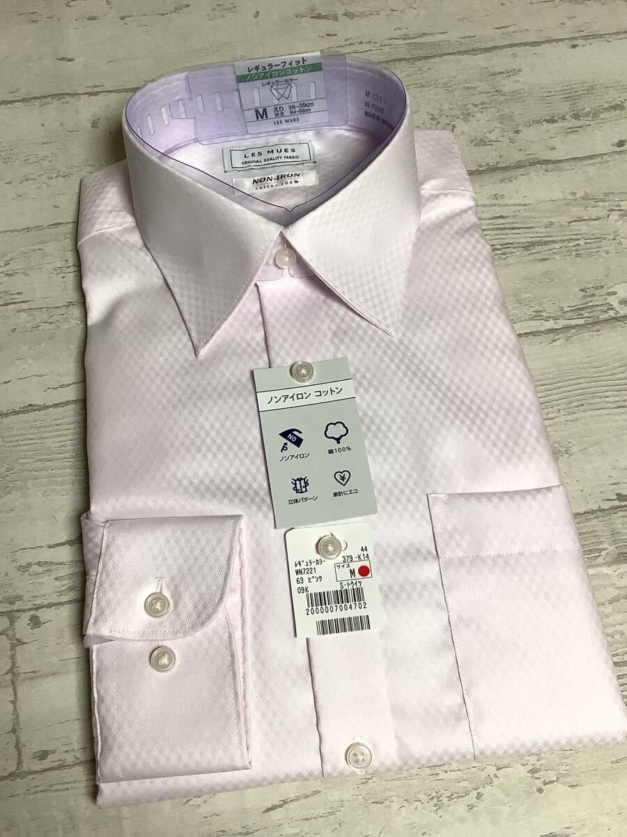 新品未使用★39-86 長袖Mサイズ ★淡いピンク色ドビー柄 ★レギュラーカラードレスシャツ 定価4,990円 ノンアイロンコットン