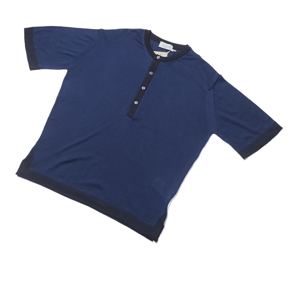 メンズ S ジョンスメドレー 最高級コットン バイカラー ヘンリーネックニット EGAN フレンチネイビー FRENCH NAVY/BLACK イギリス製★