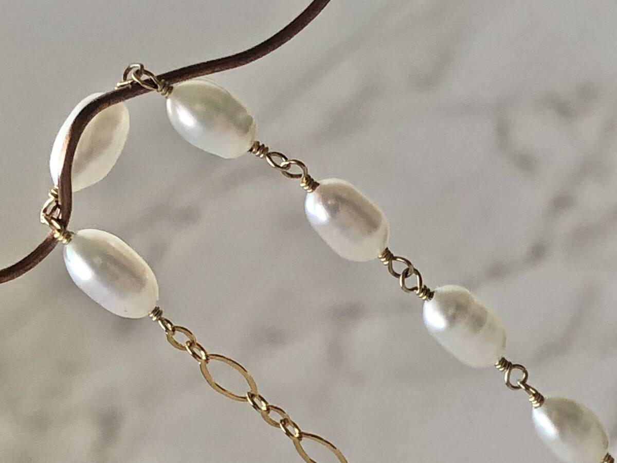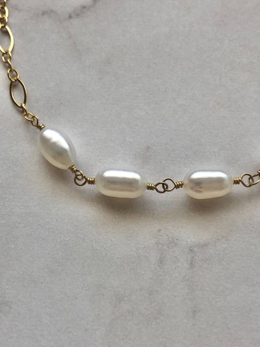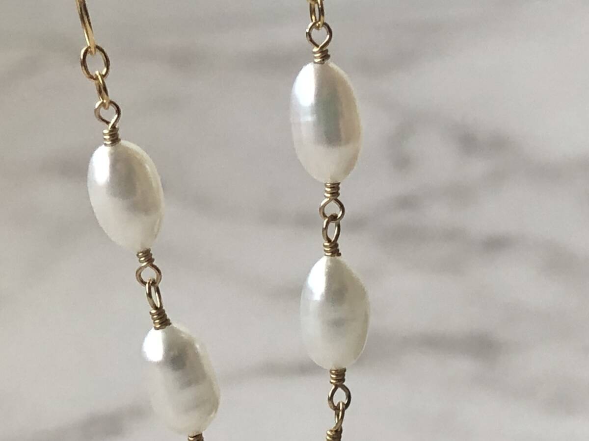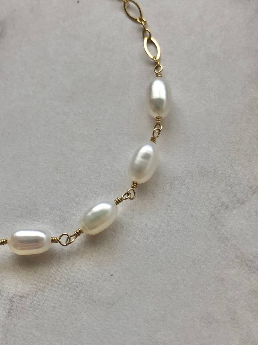 たくさんの出品商品の中からご覧頂き誠にありがとうございます。 ライス形状の淡水パールとデザインチェーンのネックレスです。 パール部分の端から端まで11.5cmほどです。 上品で華やかなお品です。 同じパールでピアスもセットにしました。 ピアス全長3.5cmほどです。 こちらの丸玉ピアスはゴールドプレイテッドで、ゴールドフィルドよりも層が薄い金メッキになります。 ※ご使用後はジュエリークロスで優しく拭いて頂くと、艶や輝きを保てます。 ジュエリークロスは、眼鏡や時計を購入した際に付いている布でも大丈夫です。 ※ 以前に別サイトにて出店しネット販売をさせて頂いておりました。 時間的に継続が難しくなり撤退後、普段は自身と身の周りの方々に作成していますが、材料の在庫過多のため限定数で出品させて頂きます。宜しかったらどうぞお迎えご検討ください。 |