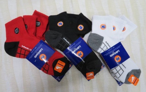人気のロゴ、Lubricants76(ルブリカンツ セブンシックス)の紳士用靴下を3足×3色、全9足をセットにして特別価格にて提供します