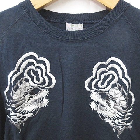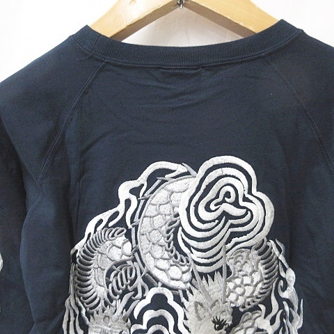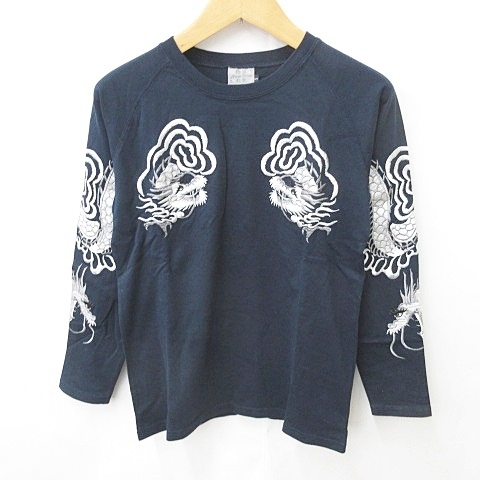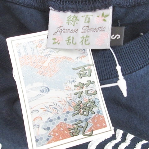 未使用品 百花繚乱 Tシャツ ロンT 長袖 丸首 刺繍 龍 綿 紺 ネイビー S メンズ