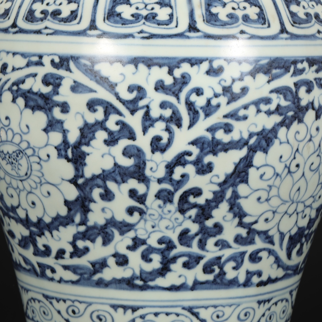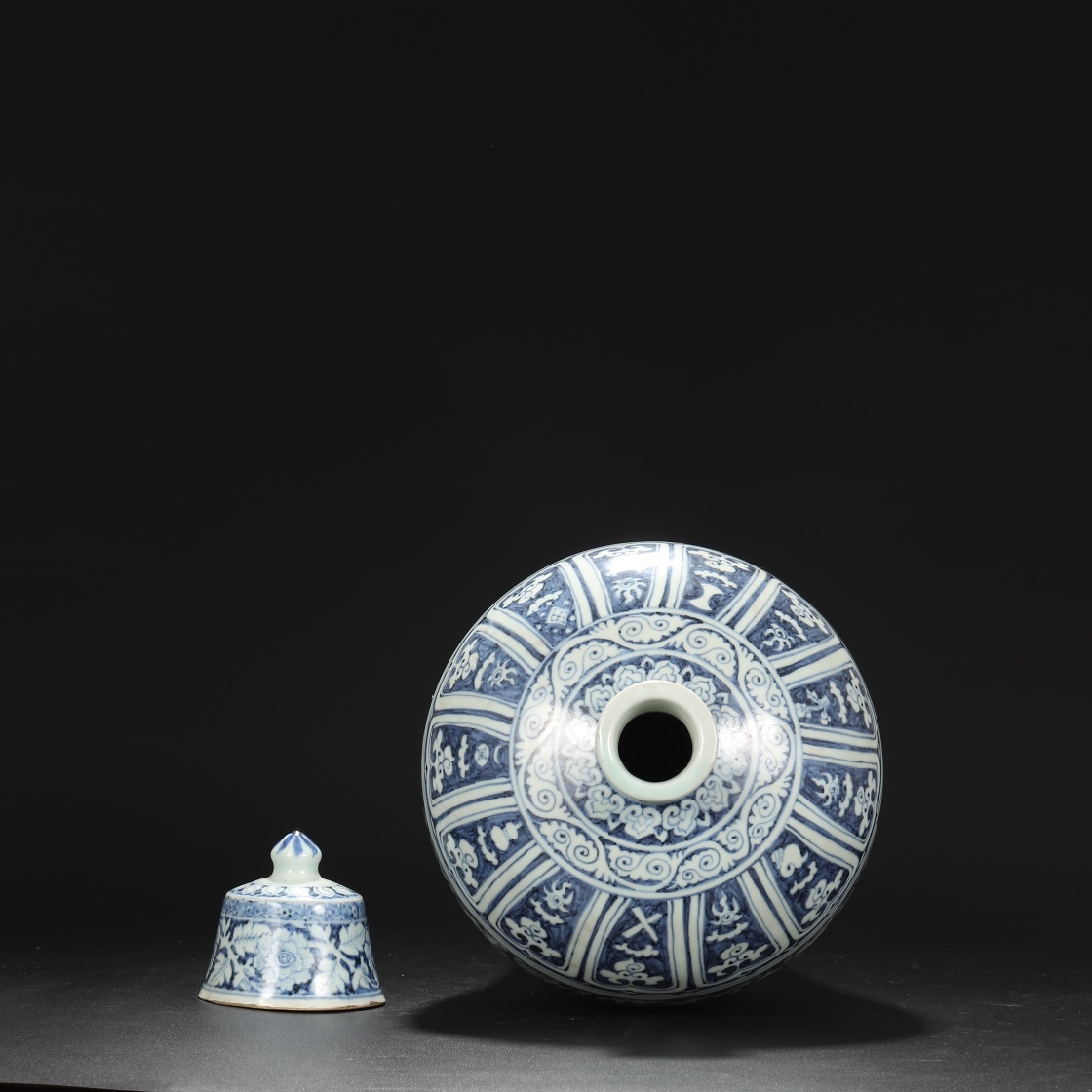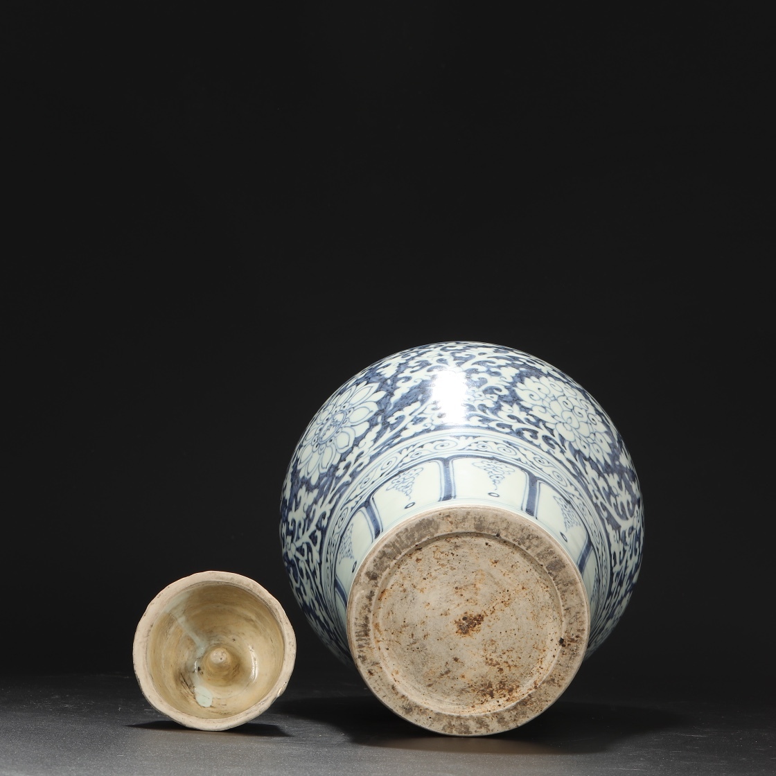 明 洪武 青花 纏枝花紋盖付大梅瓶  高41㎝ 肚径22㎝ 口径6㎝ 唐物 箱付 陶磁器 古美術 置物 RG977