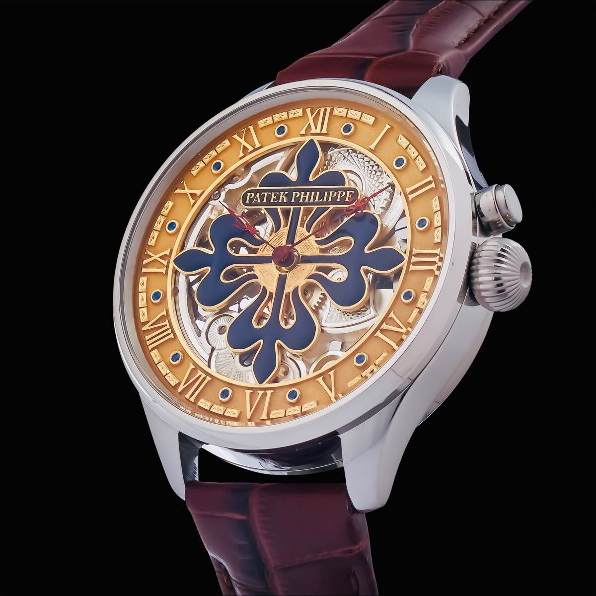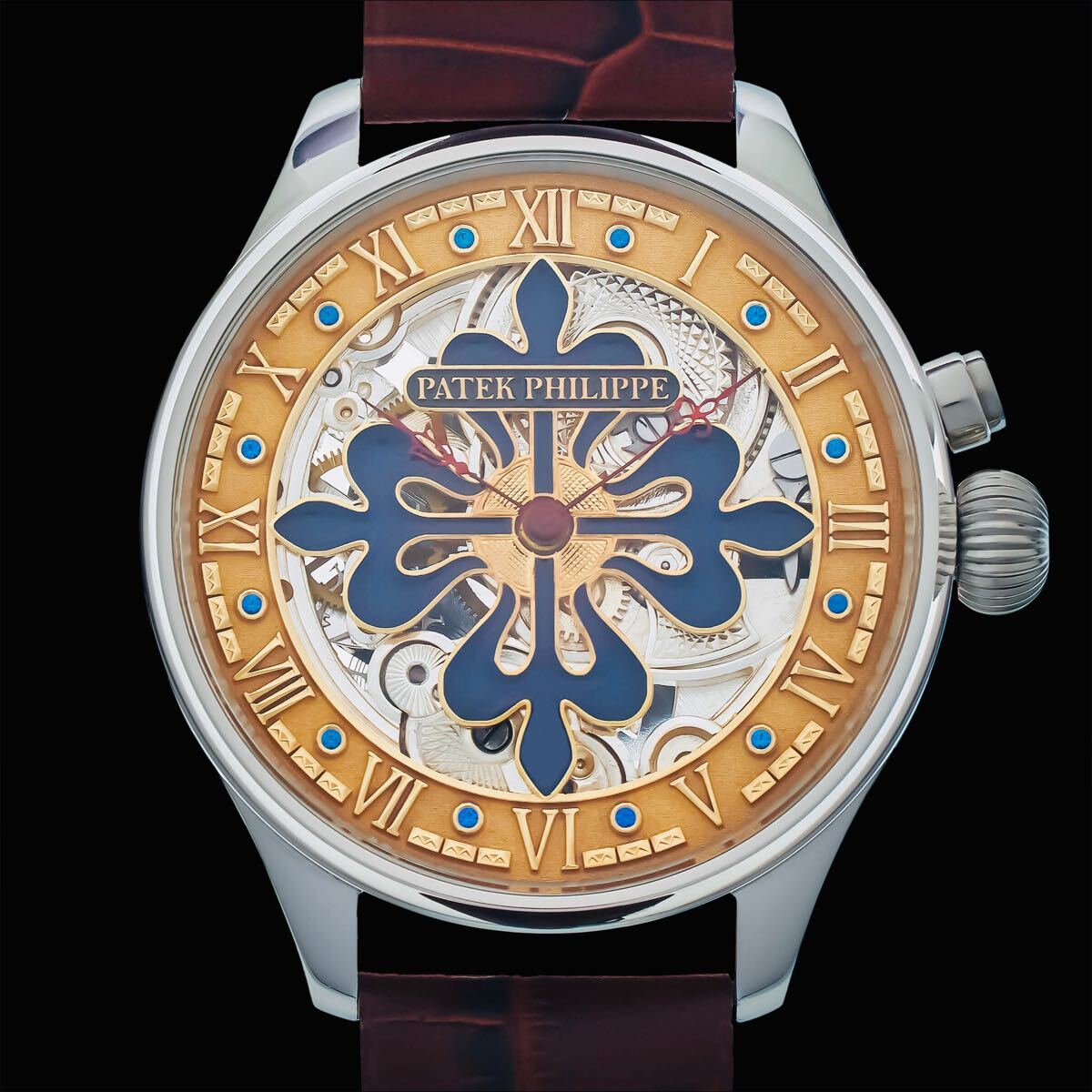 こちらの商品は高級ブランドPATEK PHILIPPEの1915年製ムーブメント(懐中時計)に豪華な装飾を施し、ヨーロッパの老舗アンティーク時計店が新たに製作したケース・文字盤・バンドを組み合わせた腕時計です。