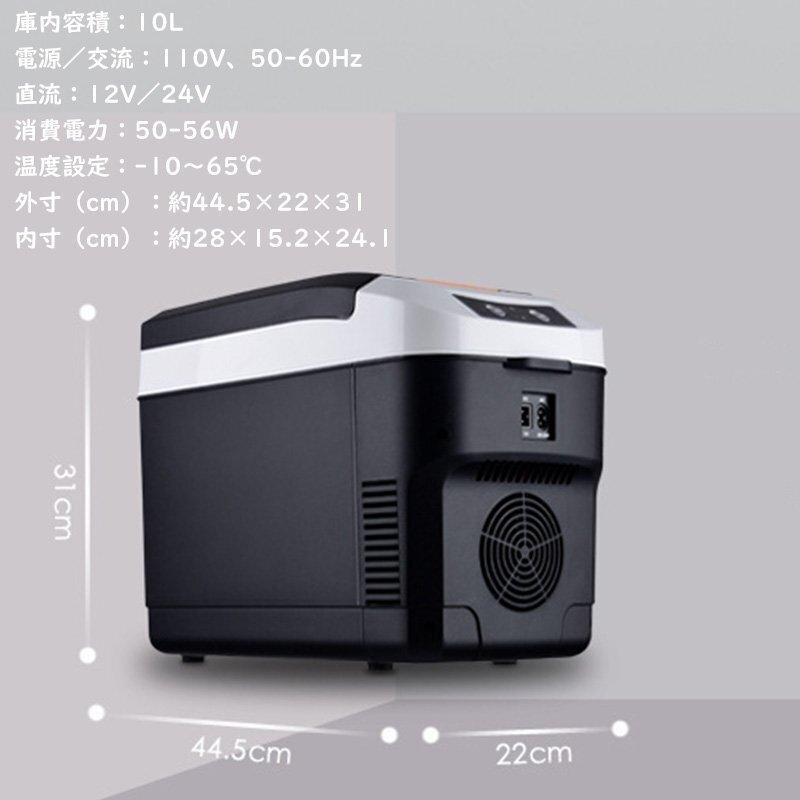 10L車載冷蔵庫 ポータブル冷蔵庫 -10℃~+65℃調整 持ち運べる小型冷蔵庫 クーラーボックス 家庭用車載用 静音 DC12V/24V ブラウン