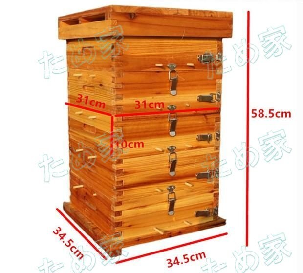 5階 蜜蜂巣箱 ミツバチ 巣箱 重箱式 養蜂箱 杉材 蜂ハイブ 格子箱 煮蝋 蜜蜂飼育箱 巣枠不要 自然造蜜 防水性と防食性 1窓