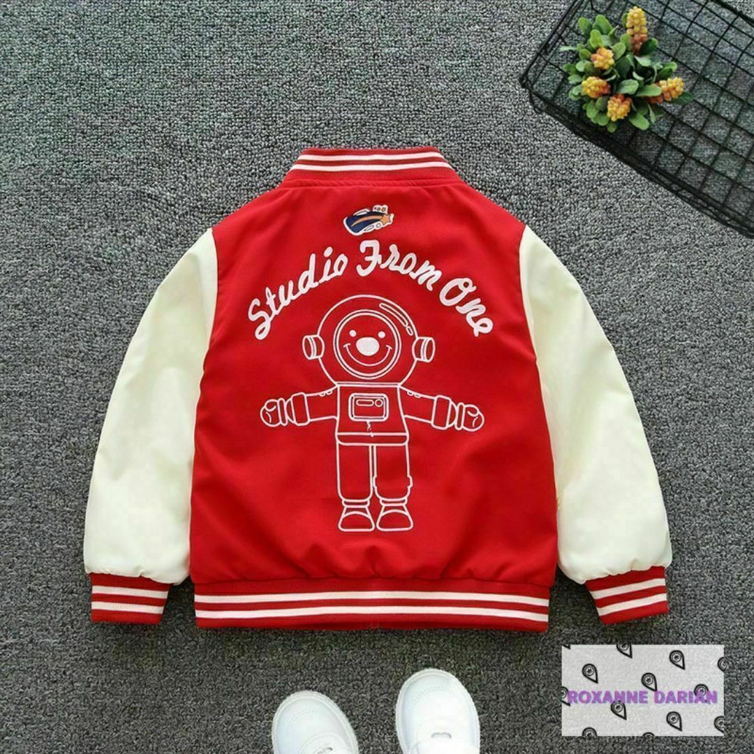 人気 キッズ スタジャン コーチジャケット ロボット カジュアル 子供用 ファスナー ポケット 秋 冬