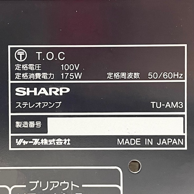 4973//SHARP シャープ AMPLIFER ステレオアンプ TU-AM3 通電確認済み | |||