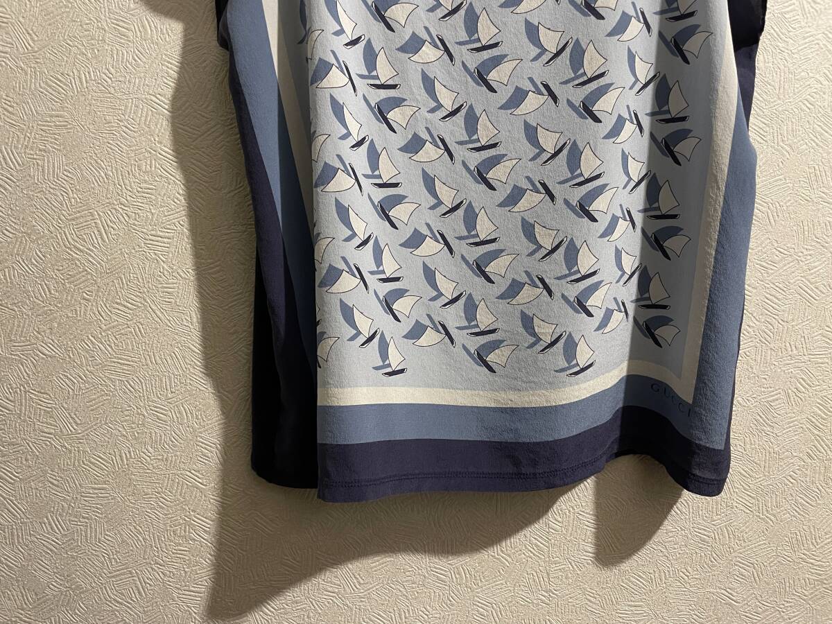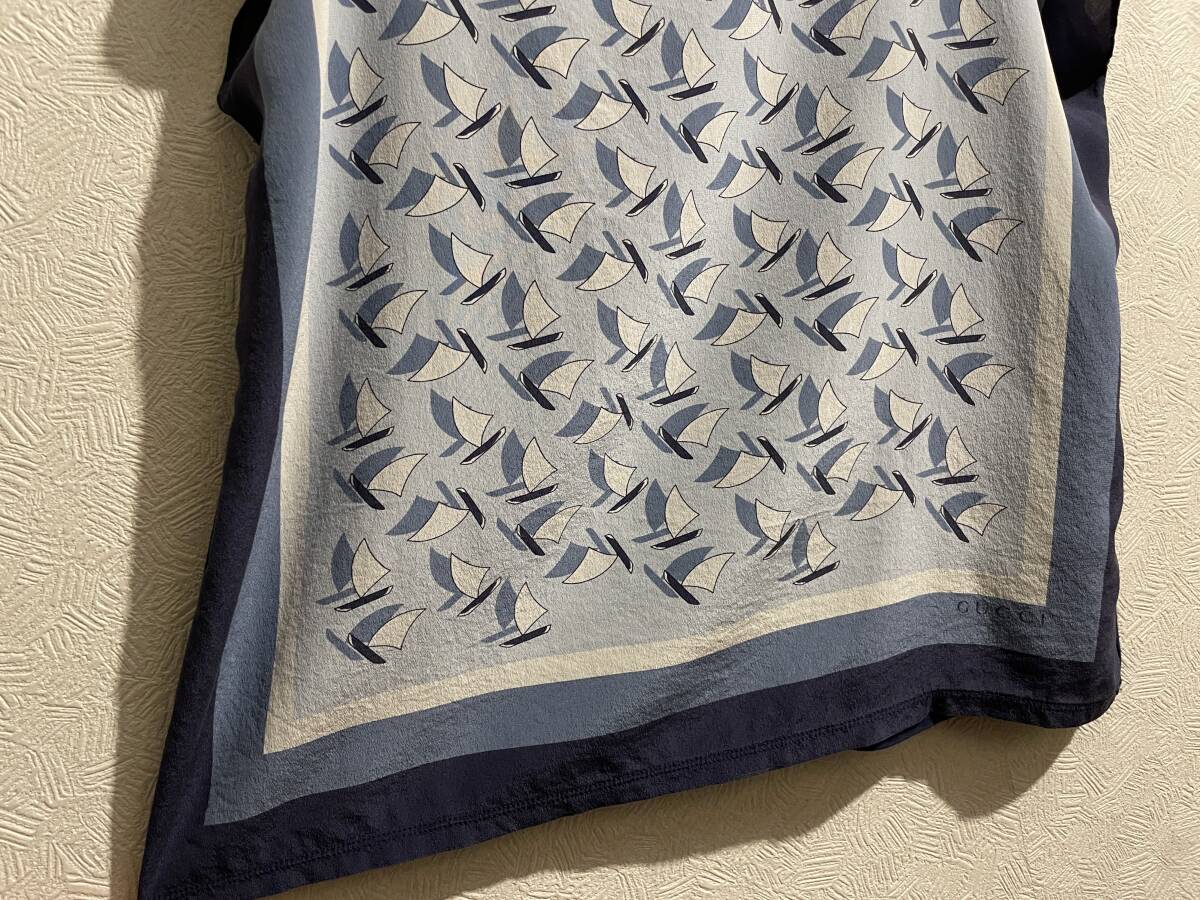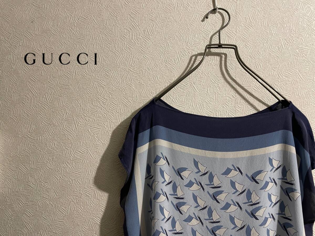 ◯ イタリア製 GUCCI スカーフ カットソー / グッチ Tシャツ ヨット ロゴ ブルー 青 Ladies #Sirchive