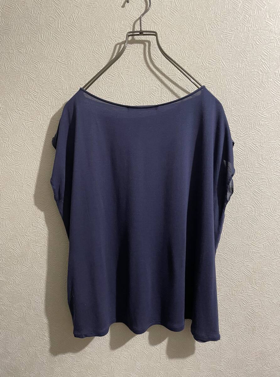 ボートネック、サイドはドレープが生まれるワイドなシルエット、