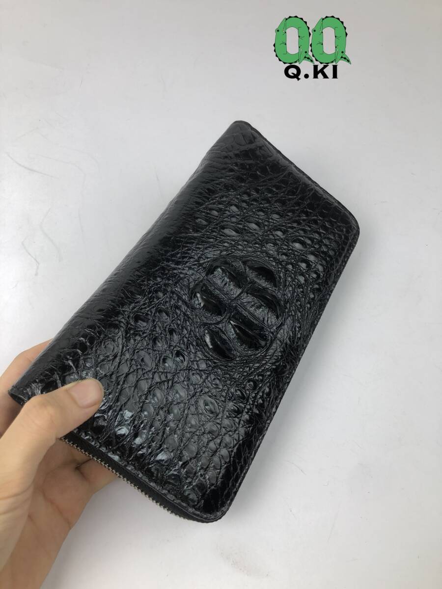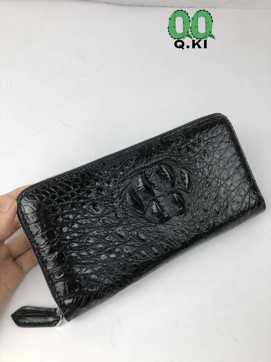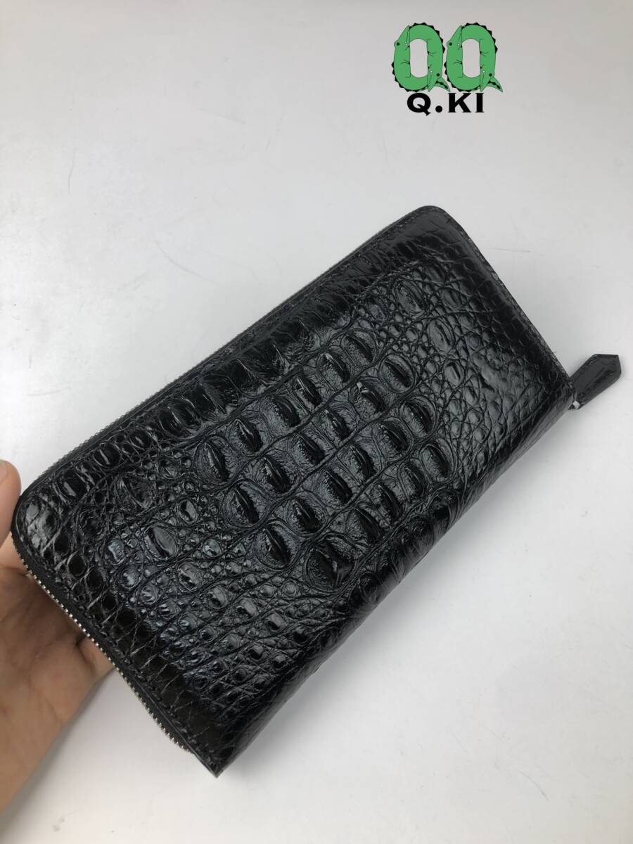 クロコダイル 長財布 本革 ブラック 黒 一枚革 センター取り クラウン ホーン 鰐革財布