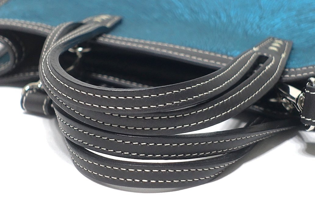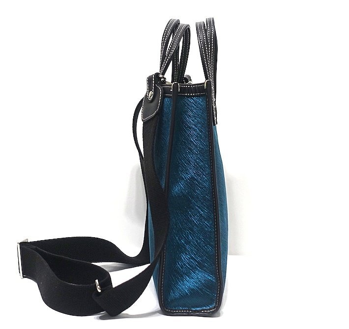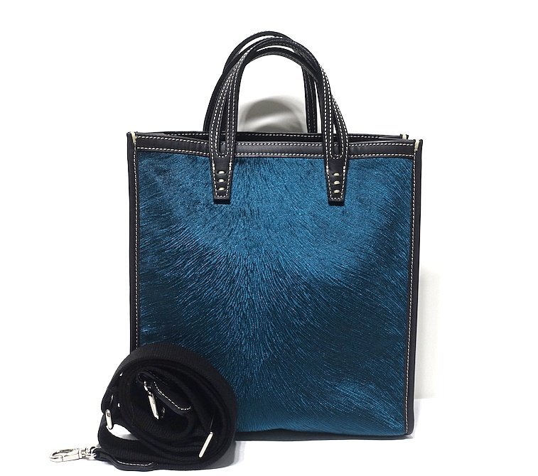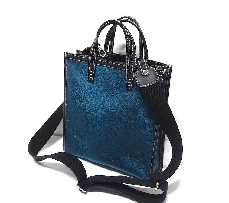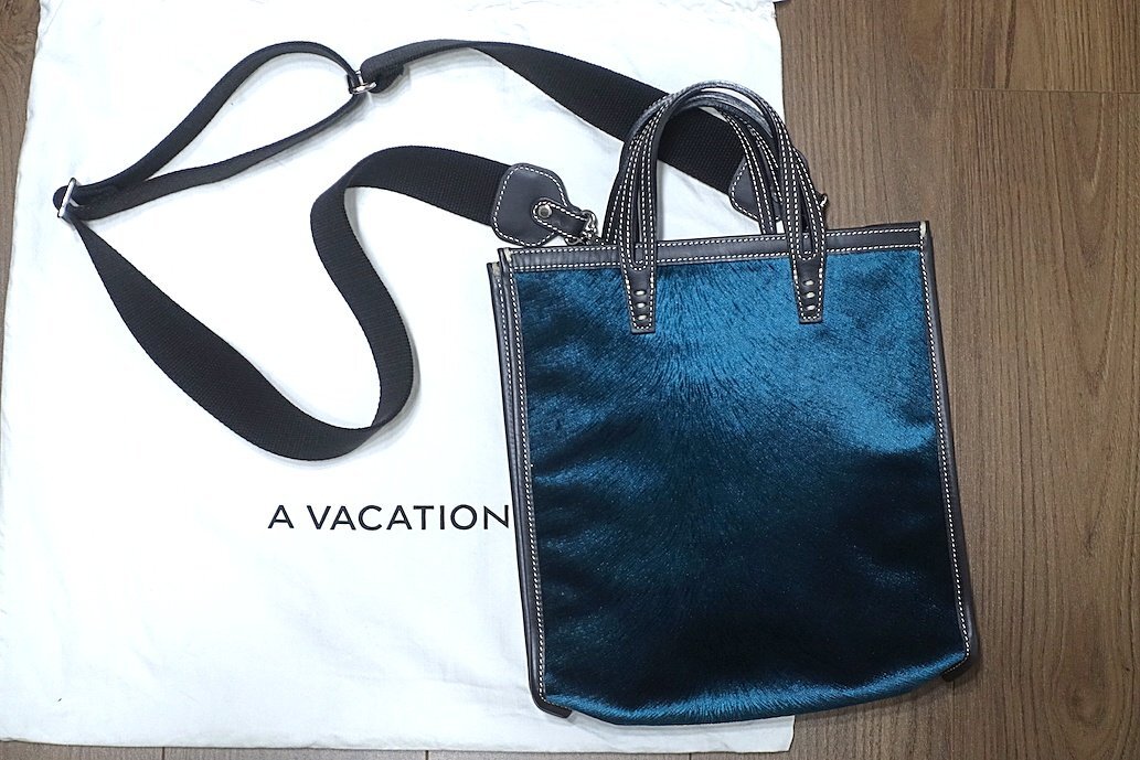 22AW 定価4.95万 使用僅 極美品 A VACATION アヴァケーション BOX VELVET BLUE 2WAY トートバッグ ショルダー ベルベット×レザー ブルー