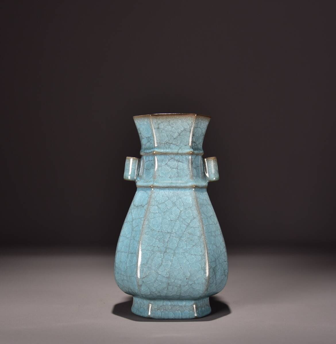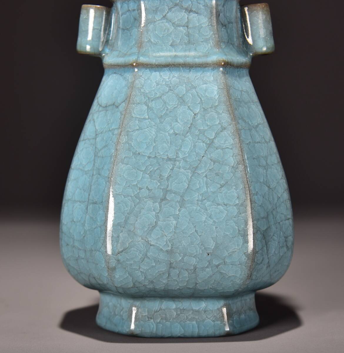 【超珍館蔵】宋 古陶瓷品 汝窯 天青釉 卷耳尊 置物 古賞物 古美術品 稀少珍蔵品