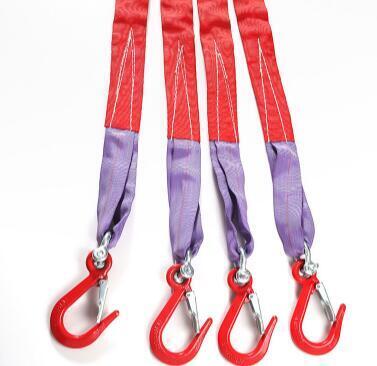 実用品 ベルトスリング 4点吊りスリングベルト 玉掛け 合金鋼製フック付き リング付き ポリエステル製 1m 耐荷重2t ベルト幅4cm