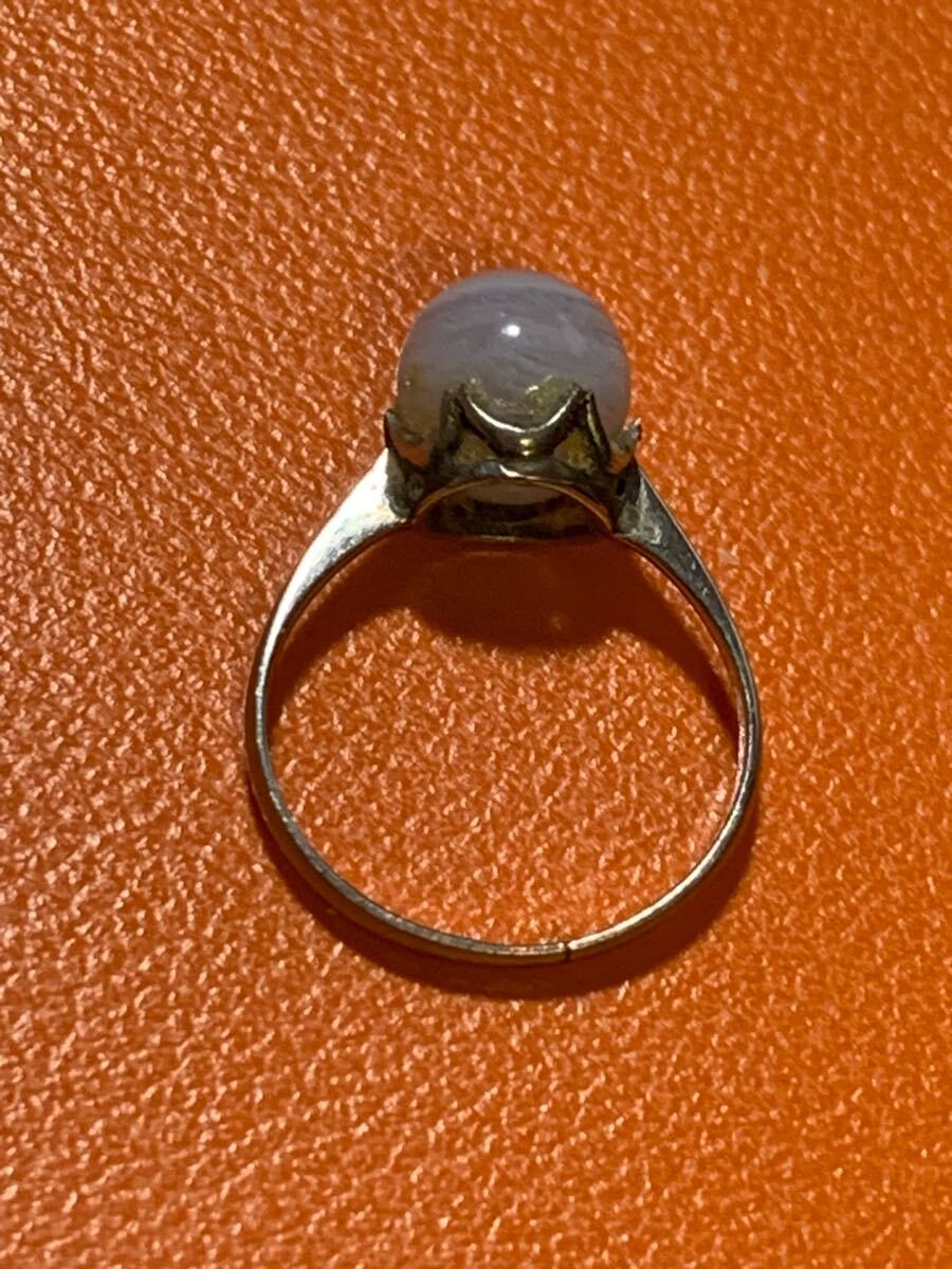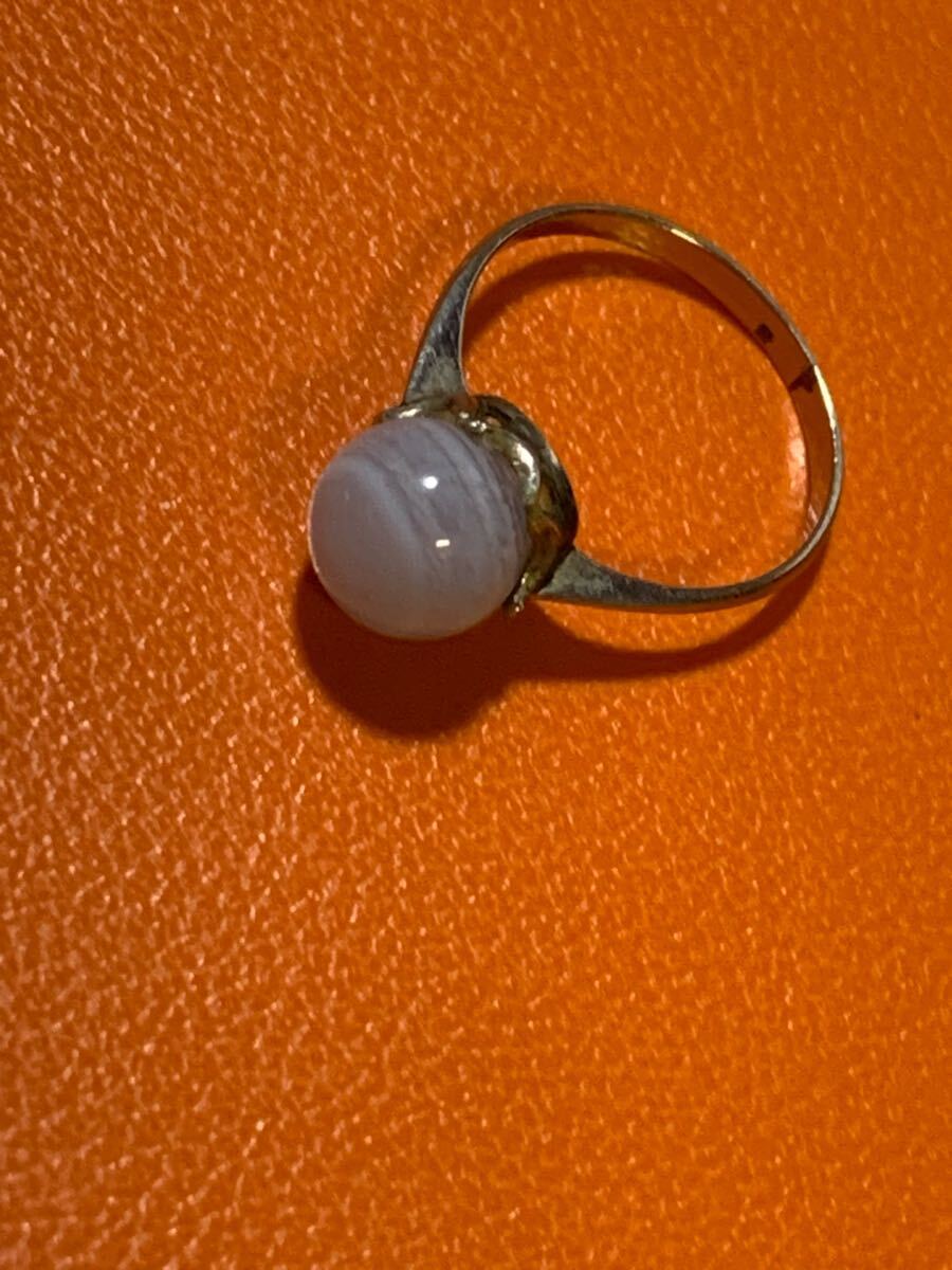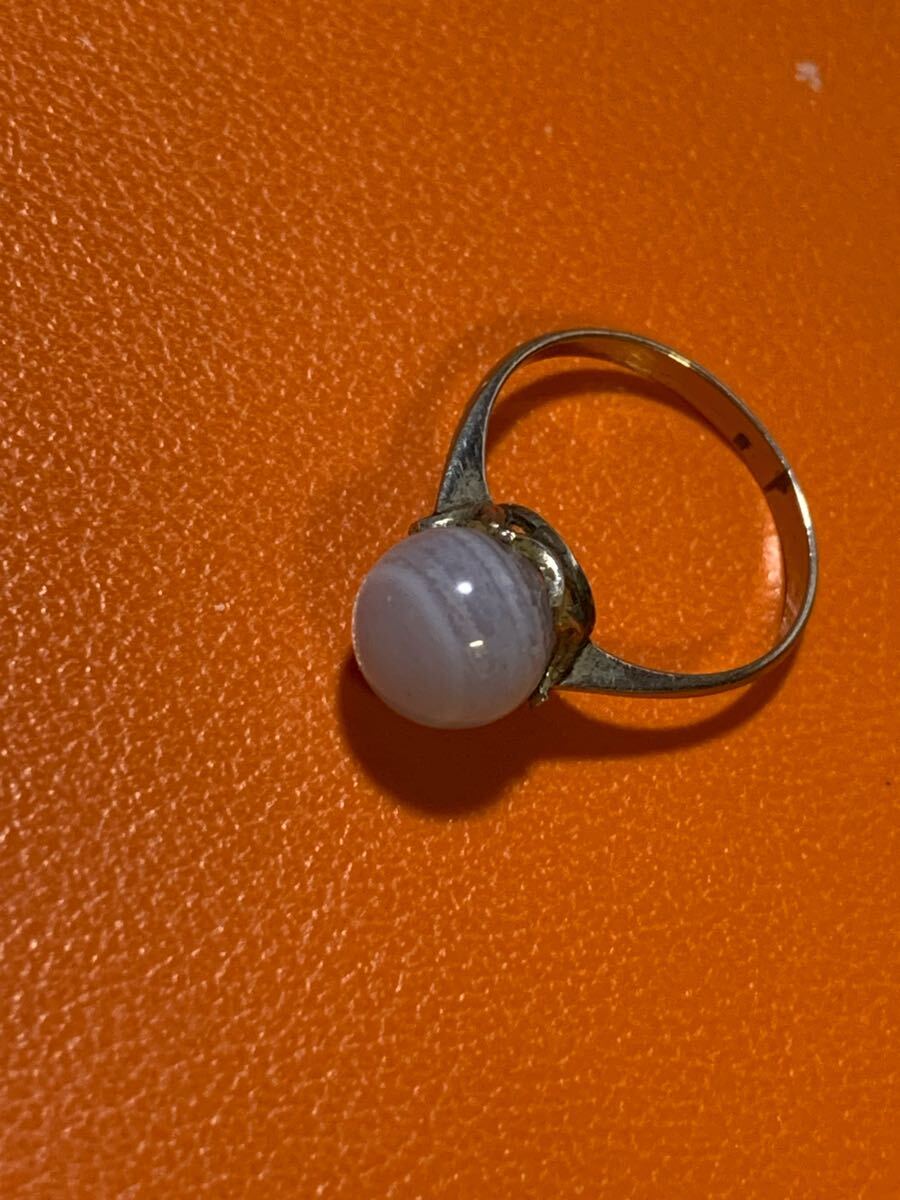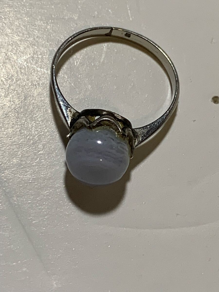 ブルーレースアゲイト?の指輪です、美しい色合いの可愛い指輪です、トップは直径8ミリ、サイズは8号です