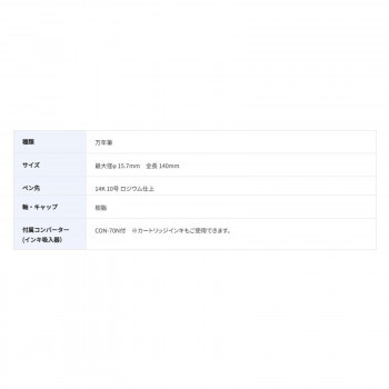 | 安定性のよいシンプルな本格派万年筆です。シンプルなベスト型のボディフォルムに加え、クリップや金輪などをシルバー基調でまとめたソリッドなデザインです。ペン先はロジウム仕上げです。 |