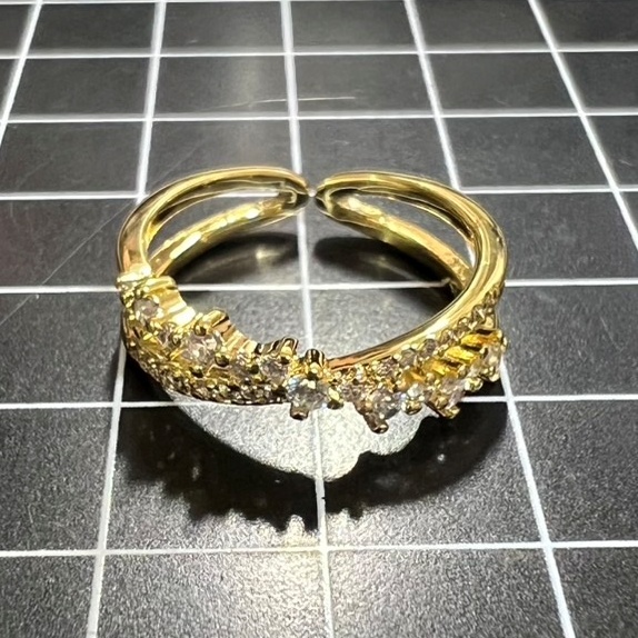 A913 匿名配送 指輪 レディース リング ゴールド s925 ジルコニア 交差 クロス 多重 二重 フリーサイズ サイズ調節可能