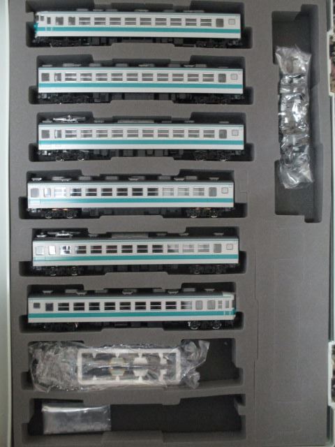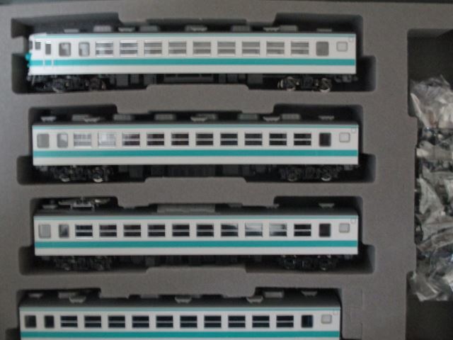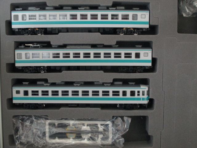 商品説明 | TOMIX 98706 国鉄 153系急行電車(新快速) 6両基本セットです。 クハ153 500 (奇数)+モハ153(後期 M)+モハ152(後期)+モハ153(後期 T)+モハ152(後期)+クハ153 0(偶数)の6両編成になります。 本来のセットでは、クハ153は両端共に低運転台の0番台ですが、奇数車を高運転台の500番台に差し替えてあり、2種類の異なる前面をお楽しみ頂けます。 また、偶数車、奇数車でジャンパ栓廻りが作り分けされています。 モハユニットは2ユニット共に後期型となります。 新集電台車、ボディマウントTN(SP)、LEDライトユニット装備になります。 モハ153の動力ユニットはFW装備のタイプで、新型のM-13モーター仕様です。 車両自体は未走行品になり、外観的には目立つ傷等もなく、まあまあ美品の部類に入るかと思います。 付属品は取扱説明書、インレタ、シール、ヘッドマークパーツ、方向幕パーツ、トイレタンク、アンテナパーツ等になりますが、一部欠品があります。 ケースは(98707 高運転台用)に入れての発送となりますが、ケースには多少に傷、スレがある場合がございます。 紙スリーブは欠品となります。 | |