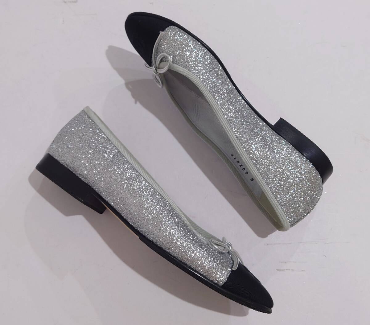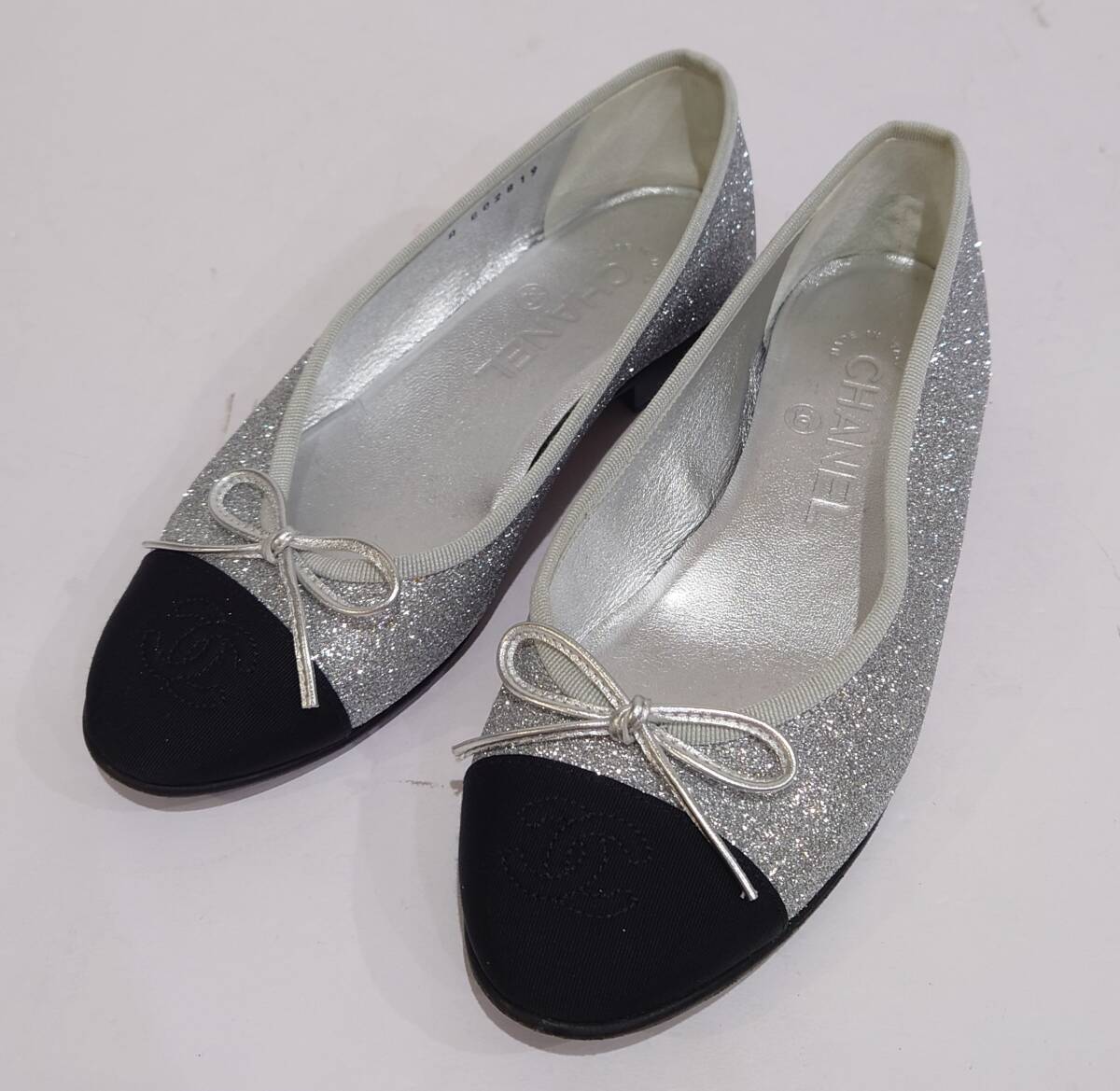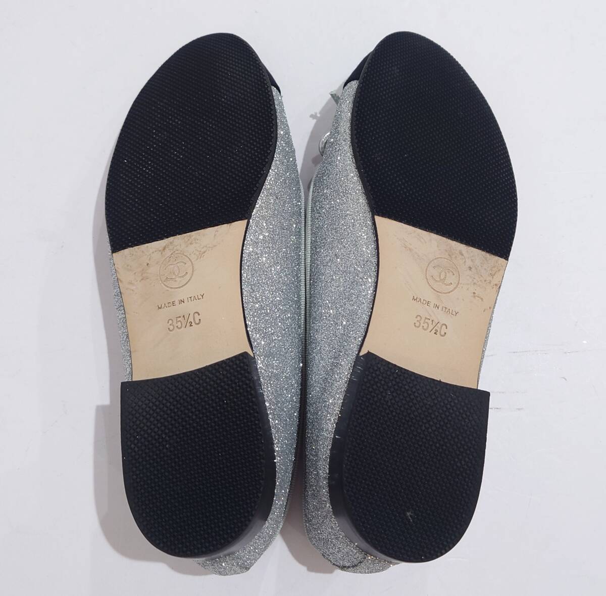 CHANEL シャネル リボン バレリーナ フラット パンプス ラメシルバー 35 1/2C Y-31382B