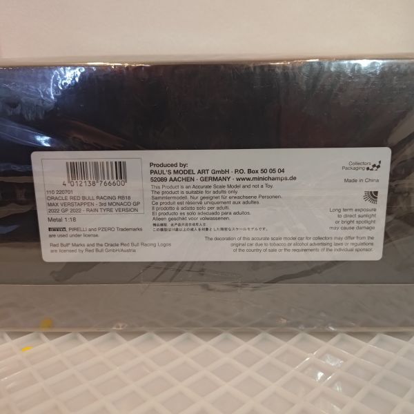 商品名;【SALE】ミニチャンプス PMA 1/18 レッドブル RB18 M.フェルスタッペン 2022年モナコGP3位